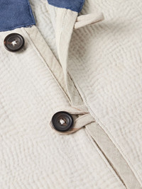 Kartik Research's jacket comes with a detachable liner that can also be worn on its own as a gilet. The outer layer is handmade from cotton-ripstop and decorated with 'Kantha' embroidery, which, according to the brand, is "not confined to any strict rules or patterns; rather, it is a form of artistic expression passed down through generations". Responsible Craftsmanship. This product promotes artisanal skills and a brand that invests in communities and adheres to fair-trade principles. Designed for Circularity. This product promotes lasting style and reduces waste by enhancing longevity, reuse or end-of-life solutions. Find out more about our Consciously Crafted criteria here. Size & Fit - Fits true to size, however those who are between sizes should take the smaller size - Designed for a relaxed fit - Intended to be worn multiple ways - Lightweight, non-stretchy fabric - Model is shown wearing a S - Model measures: chest 38"/ 96cm, height 6'1"/ 185cm Details & Care - Green cotton-ripstop, ecru and blue cotton - Button fastenings - Fabric1: 100% cotton; fabric2: 100% cotton; buttons: 100% horn (Buffalo) - Green dry clean - This piece is made from upcycled fabrics and therefore may differ slightly from that pictured