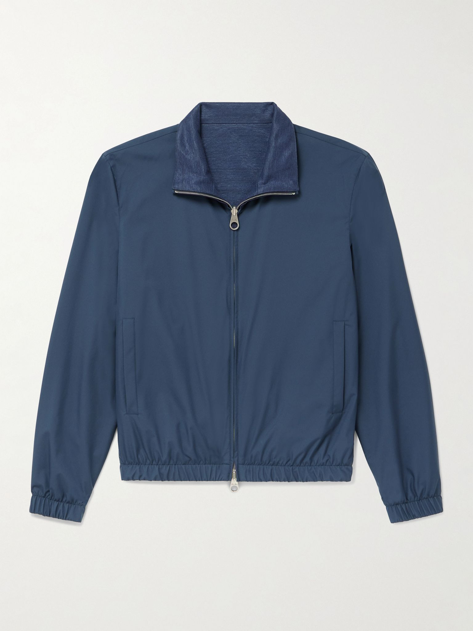 You'll reach for Loro Piana's bomber jacket often thanks to the reversible design and wrinkle-resistant properties are handy for travelling. It's been made in Italy from smooth twill and tech-jersey and treated with Storm System® technology for protection against wind and rain. Size & Fit - Fits true to size. Take your normal size - Regular fit; designed for movement - Mid-weight, non-stretchy fabric - Model is shown wearing a M - Model measures: chest 38"/ 96cm, height 6'3"/ 191cm Details & Care - Navy Storm System® jersey and twill - Two-way zip fastening - 100% polyamide