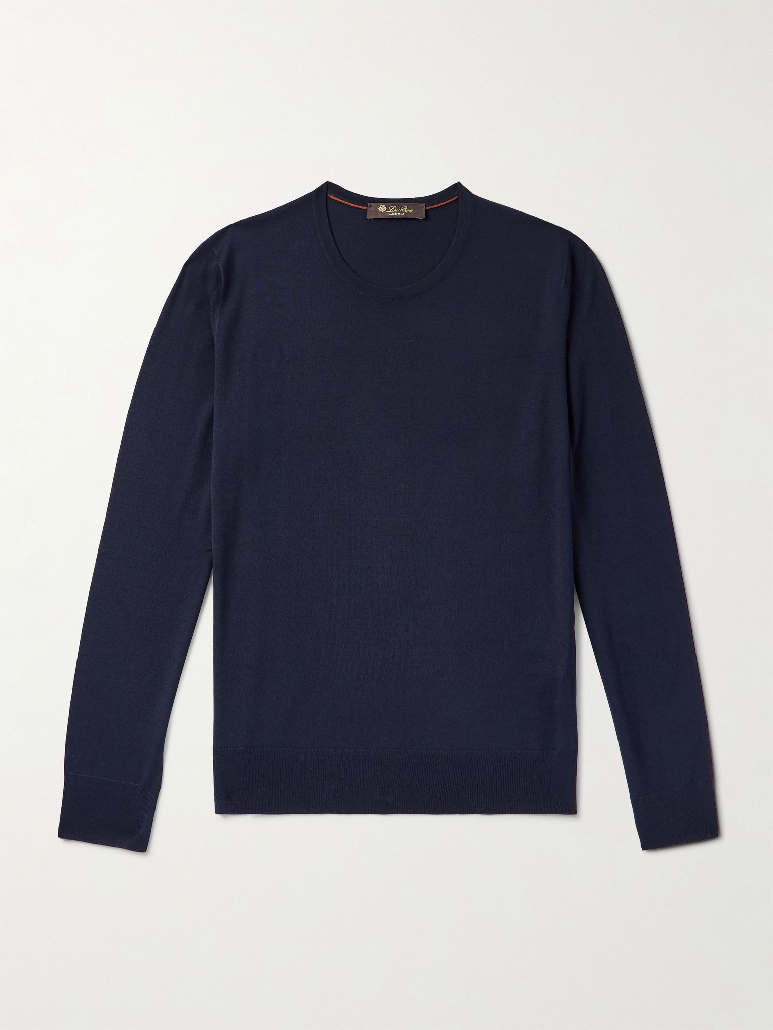 Loro Piana always sets the bar for quality fabrics. This sweater, for instance, is made from the knitwear specialist's Wish® wool which is spun from fine virgin merino carefully sourced from Australia and New Zealand. It's constructed in a fine-gauge stitch and has a neat fit through the body. Size & Fit - Fits true to size. Take your normal size - Designed for a regular fit - Lightweight knit - Model is shown wearing an IT 48 - Model measures: chest 38"/ 96cm, height 6'2"/ 188cm Details & Care - Navy Wish® virgin wool - 100% virgin wool - Machine wash