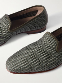 Mario Leather-Trimmed Raffia Loafers Dark green