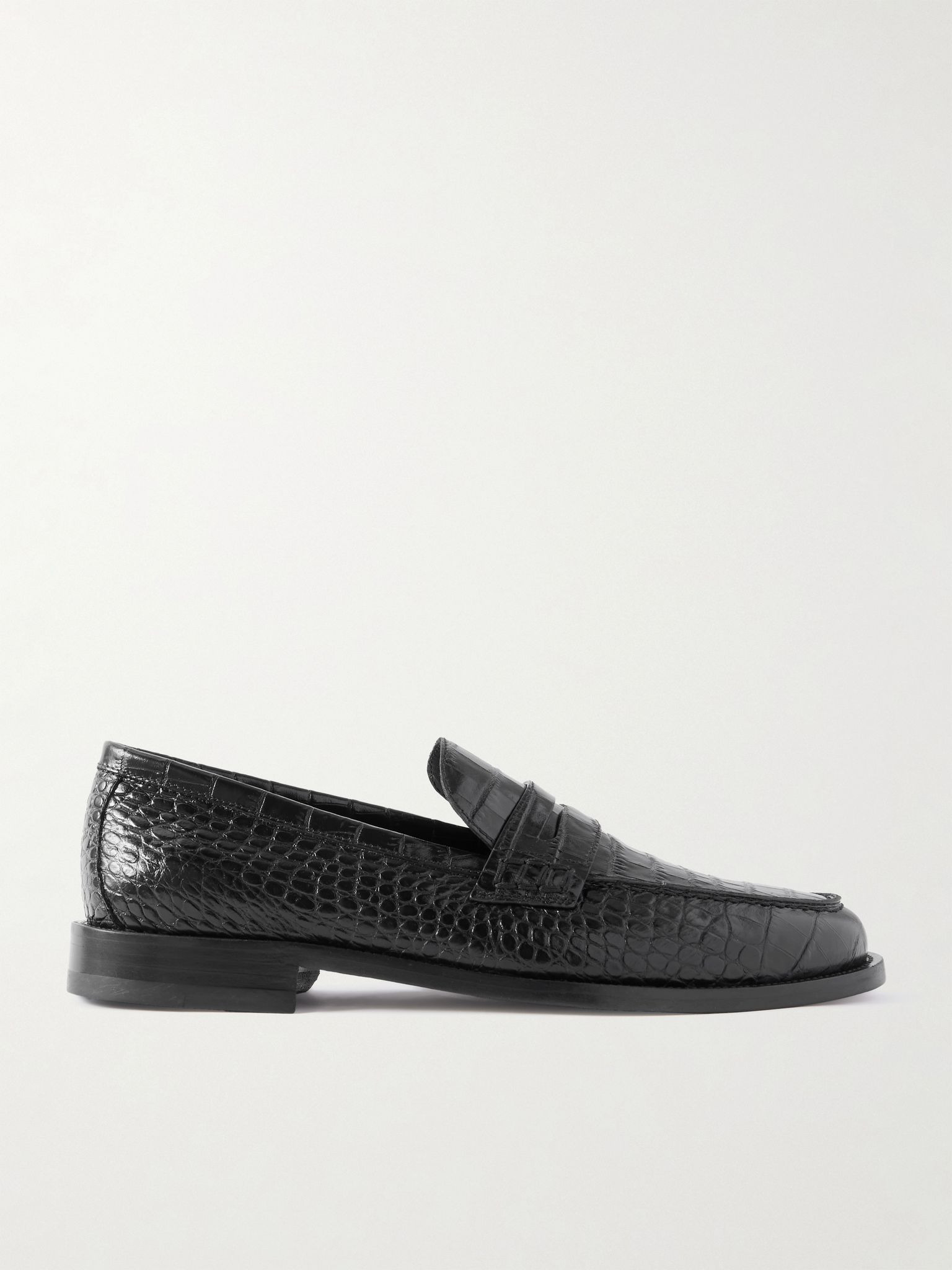 It doesn't get much more classic than Manolo Blahnik's penny loafers. This 'Perry' pair has been handmade in Italy from glossy croc-effect leather. Wear yours with everything from jeans to tailoring. Size & Fit - Fits true to size, take your normal size - UK sizing Details & Care - Black croc-effect leather (Calf)
