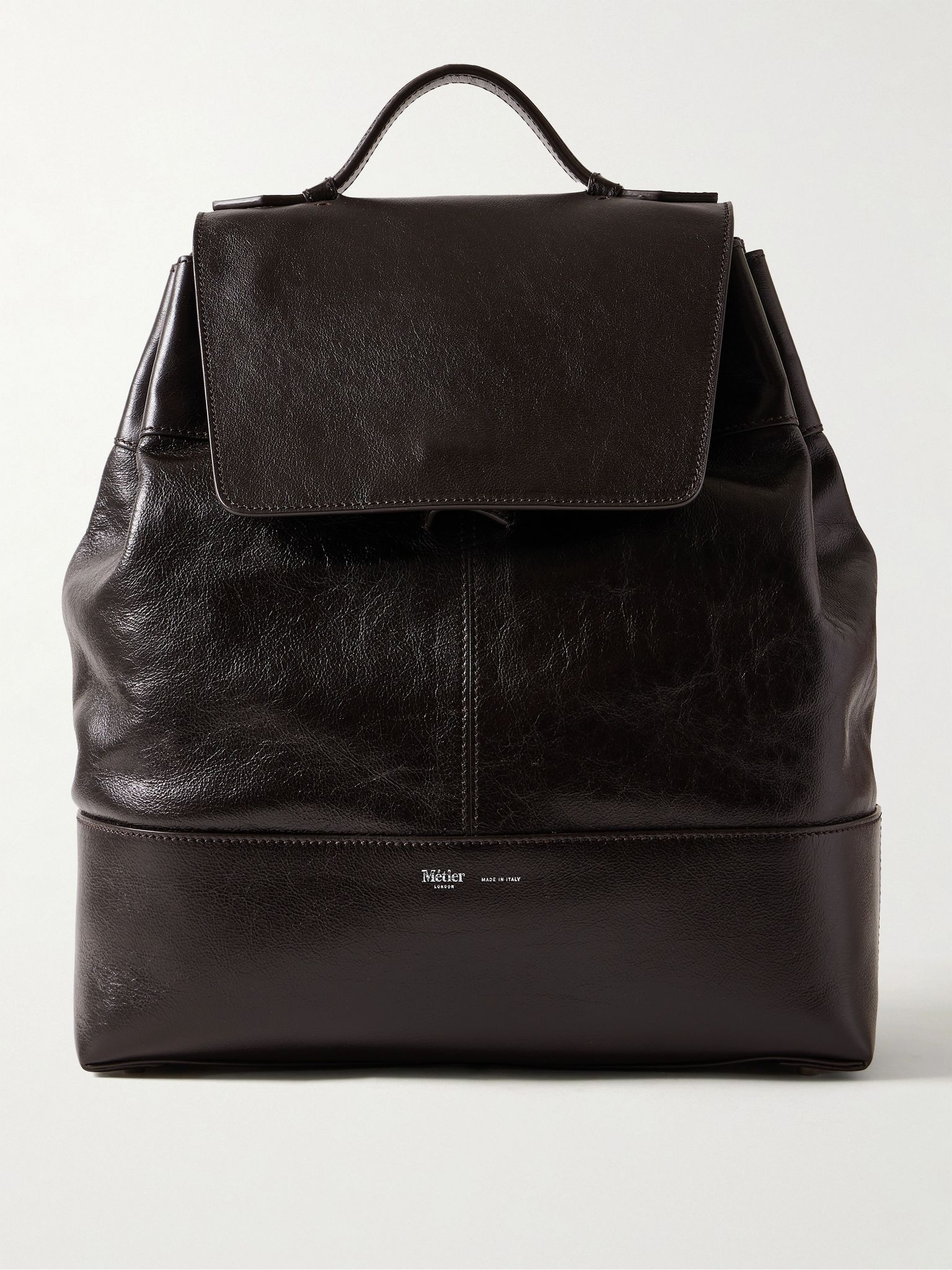 Metier's 'Glide' backpack is such a sleek way to carry the essentials, whether you're headed to the office or airport. Handcrafted in Italy from panels of glossy full-grain leather, it's stamped with the label's logo and can be carried by the sturdy top handle or adjustable shoulder straps. It has a laptop sleeve along with plenty of pockets to keep your keys, phone and wallet organised. Details & Care - Dark-brown full-grain leather (Buffalo) - Top handle, adjustable leather shoulder straps - Back zipped pockets, internal snap-fastening pockets, slip pocket, pen slots and laptop sleeve - Suede lining - Drawstrings and hook fastening - Designer colour: Elvis Cacao - Comes with dust bag