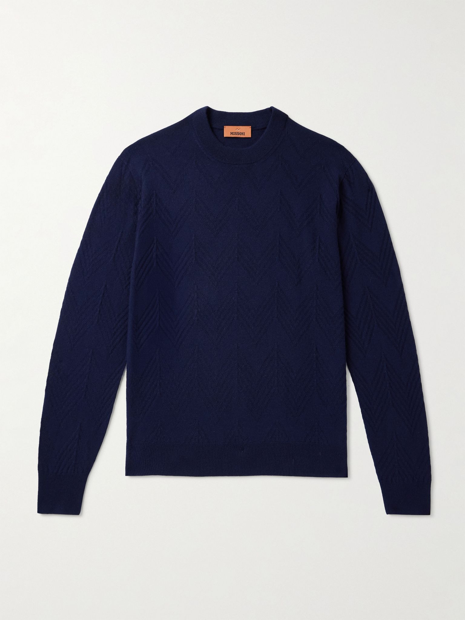 Missoni's mock-neck sweater is jacquard-knit with a tonal chevron pattern, the label's signature motif. It's been made in Italy from 15-gauge cashmere and has a slouchy shape for comfortable layering. Size & Fit - Those who are above 6'1"/ 185cm may wish to take the next size up - Designed for a regular fit - Fine knit - Model is shown wearing an IT 48 - Model measures: chest 36"/ 92cm, height 6'2"/ 188cm Details & Care - Navy cashmere - 100% cashmere - Dry clean