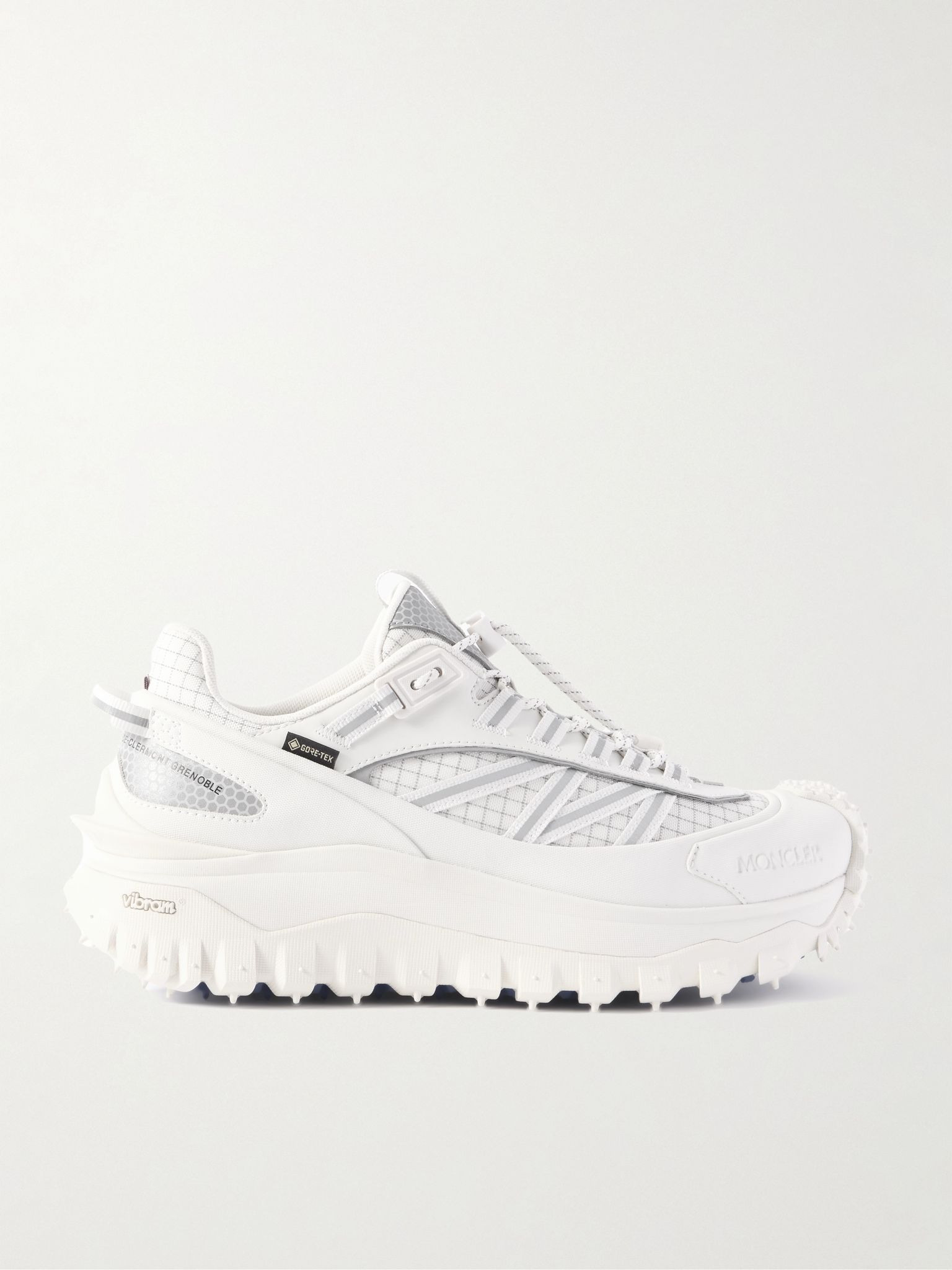 Moncler's 'Trailgrip' line is named after its functionality. Built for the wintry terrain of Aspen and the Alps, these GORE-TEX ripstop sneakers are reinforced with durable leather and suede and have high-performance Vibram soles for superior balance and grip. Toggle fastenings allow for quick adjustments, while reflective trims enhance visibility in low-light conditions. Size & Fit - Fits true to size. Take your normal size - Only available in full sizes, go up to the nearest whole size if you take a half size - European sizing Details & Care - White and tonal-grey ripstop, white and grey leather, white rubber - Toggle fastenings - Style number: 4M00100-M2058