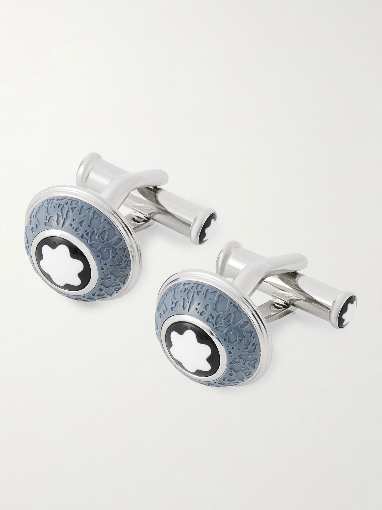 Montblanc's cufflinks are designed as a tribute to Johann Wolfgang von Goethe - the shade of blue and the pattern on the enamel are based on the wallpaper of the 'Juno' room in the writer's home. Made from siler-tone steel, they feature the brand's white star emblem, representing the snow-covered glaciers of its namesake summit. Details & Care - Silver-tone metal - T-bar fastenings