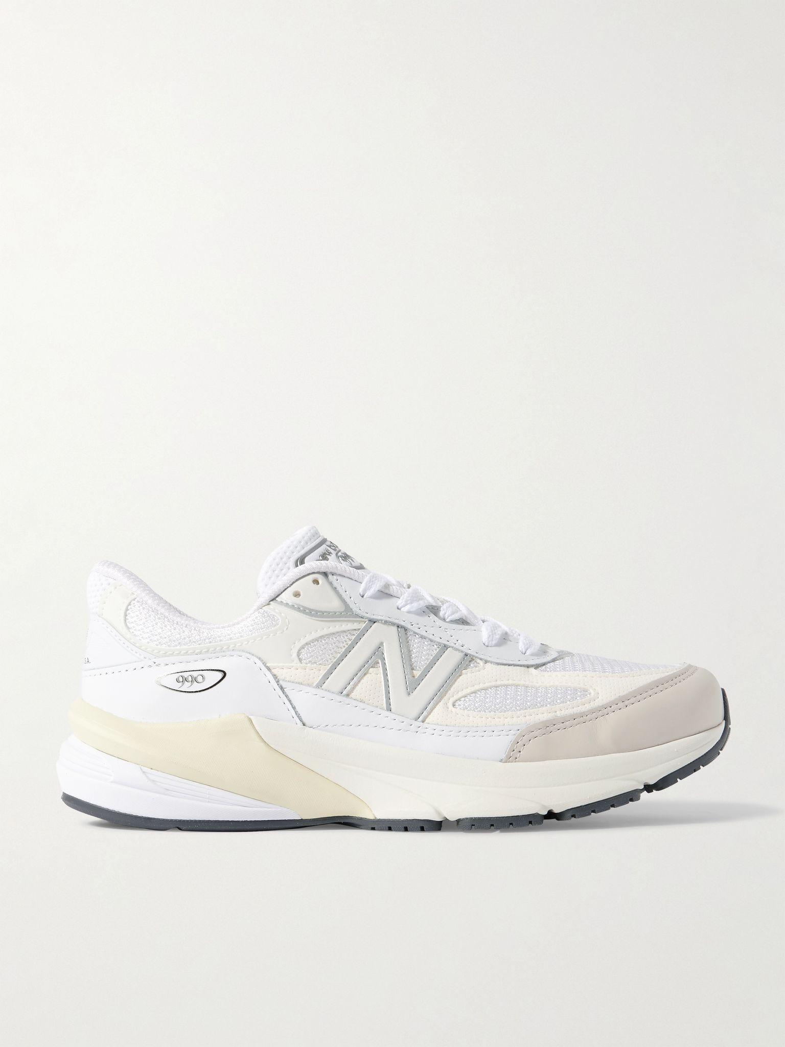 990 V6 Leather-Trimmed Suede and Mesh Sneakers White