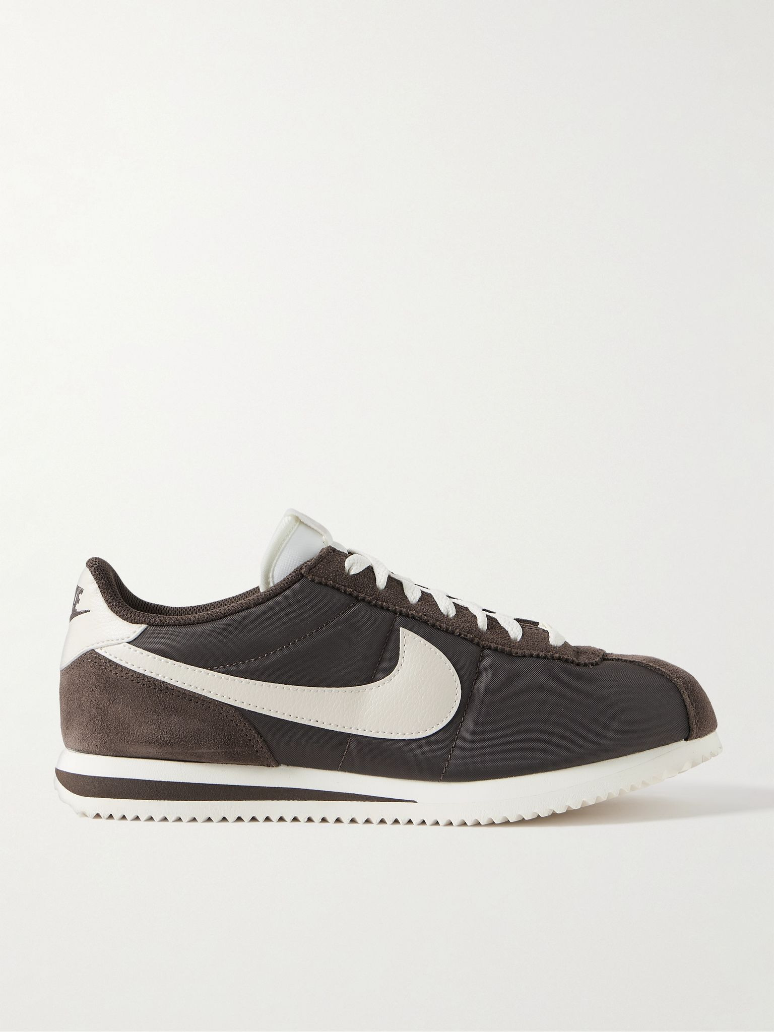 Nike's 'Cortez' sneakers have been a signature of the brand for decades. This suede- and leather-trimmed pair is made from 'Baroque Brown' shell and set on 'see saw' soles that give the style a real retro feel. Size & Fit Fits true to size, please refer to Nike size guide below: - US 4 = UK 3.5/ EU 36 - US 4.5 = UK 4/ EU 36.5 - US 5 = UK 4.5/ EU 37.5 - US 5.5 = UK 5/ EU 38 - US 6 = UK 5.5/ EU 38.5 - US 6.5 = UK 6/ EU 39 - US 7 = UK 6/ EU 40 - US 7.5 = UK 6.5/ EU 40.5 - US 8 = UK 7/ EU 41 - US 8.5 = UK 7.5/ EU 42 - US 9 = UK 8/ EU 42.5 - US 9.5 = UK 8.5/ EU 43 - US 10 = UK 9/ EU 44 - US 10.5 = UK 9.5/ EU 44.5 - US 11 = UK 10/ EU 45 - US 11.5 = UK 10.5/ EU 45.5 - US 12 = UK 11/ EU 46 - US 12.5 = UK 11.5/ EU 47 - US 13 = UK 12/ EU 47.5 - US 13.5 = UK 12.5/ EU 48 - US 14 = UK 13/ EU 48.5 Details & Care - Tonal-brown shell and suede, cream leather (Calf) - Lace up - Designer colour: Baroque Brown/ Sail/ Light Orewood Brown - Style number: HF0263-200 - Nike follows its own size conversion, therefore the size stated on the box will differ from the one provided in our conversion chart. To receive your correct fit, please refer to Size and Fit notes