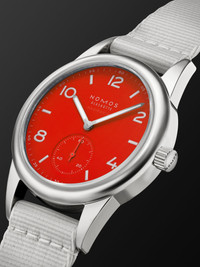 Every NOMOS Glashutte timepiece is engineered at the heart of Germany's historic watchmaking capital, for which the brand is named. Designed for active lifestyles, this 'Club Neomatik' style is built from stainless steel and features a bold 'Siren Red' dial. It's driven by a high-performance DUW 3001 movement and fitted on a durable, comfortable webbing strap. For warranty information, please refer to details & care Details & Care Movement - Swiss-made calibre DUW 3001 automatic movement with 43-hour power reserve - 27 jewels, 21,600 Vph Functions - Hour and minute hands, seconds subdial Dial - 'Siren Red' dial - Rhodium-plated Super-LumiNova® hands, numerals and markers Case - Stainless steel case - Crown for time adjustments and manual winding - Sapphire glass crystal - Exhibition case back - Pin buckle-fastening light-grey webbing strap Specifications - Case diameter: 37mm; case thickness: 9.2mm; strap width: 18mm - Water resistance: 20 bar - Comes in a presentation box with leather case - Reference number: 742 We offer a two-year warranty for all working parts and manufacturing faults for luxury watches. For more information, contact one of our experts by emailing watches@mrporter.com