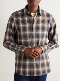Officine Generale's 'Benoit' shirt is cut from breathable cotton-flannel for extra softness. It's patterned with an 'Iced Coffee' and navy check that's easy to style with your existing wardrobe - roll up the sleeves and pair it with relaxed denim on the weekends. Size & Fit - Fits true to size. Take your normal size - Designed for a slightly loose fit - Lightweight, non-stretchy fabric - Model is shown wearing a M - Model measures: chest 38"/ 96cm, height 6'1"/ 185cm Details & Care - Multicoloured cotton-flannel - Button fastenings - 100% cotton - Machine wash - Designer colour: Iced Coffee/ Cream/ Navy