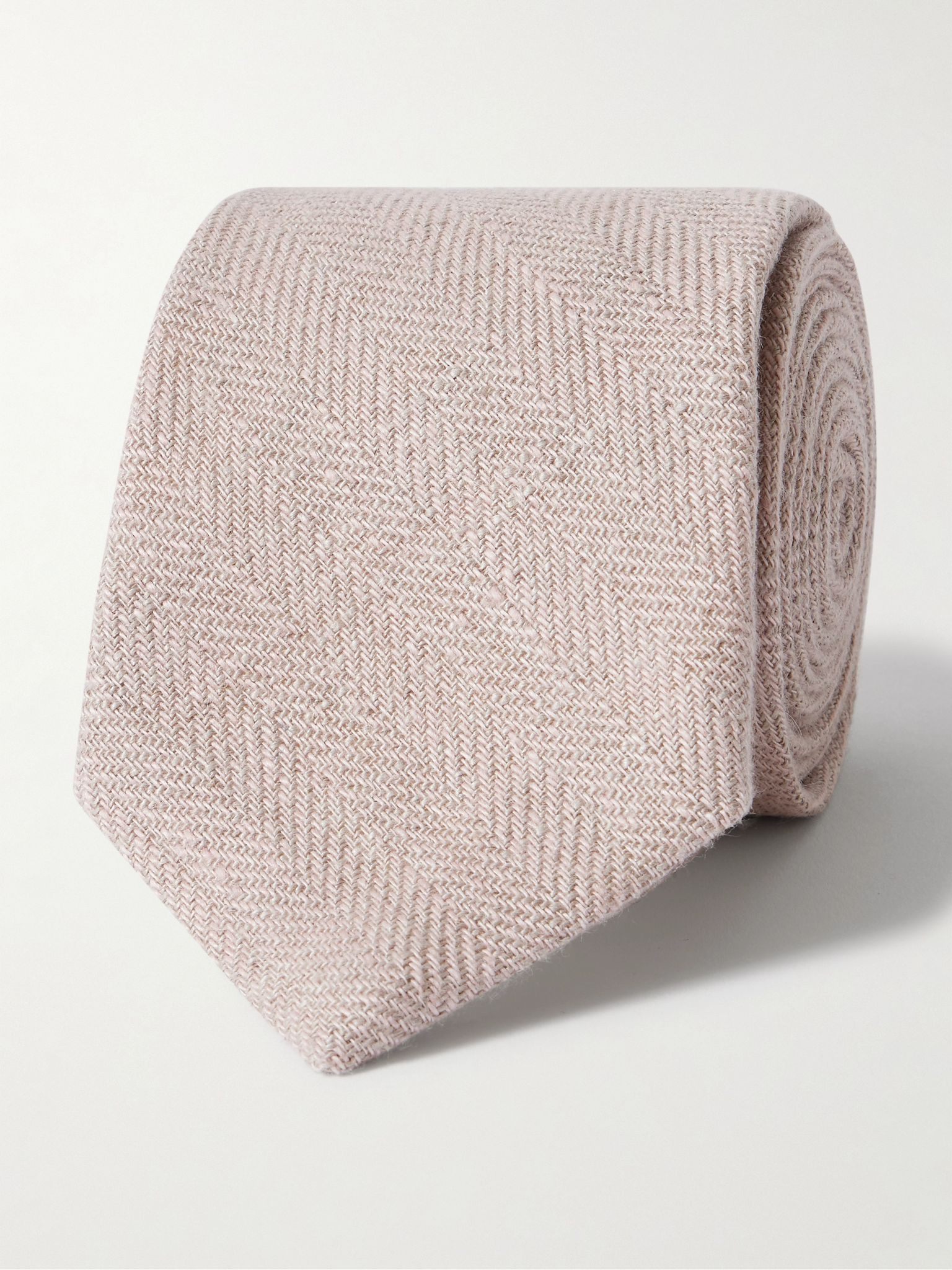 Think of a tie as an easy way to polish off your outfit. Oliver Spencer's 'The Southwell' style is made from linen woven in subtle herringbone stripes. The light-pink melange will complement navy suits nicely. Details & Care - Light-pink and beige melange linen - 100% linen