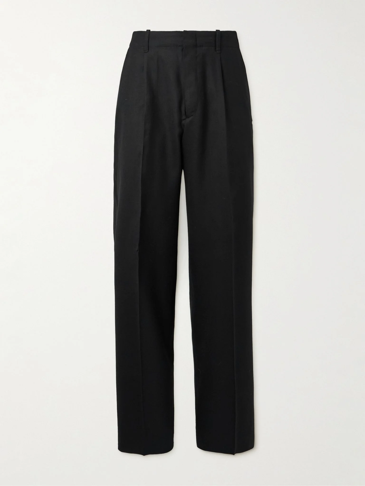 Borrowed Straight-Leg Pleated Wool Trousers Black