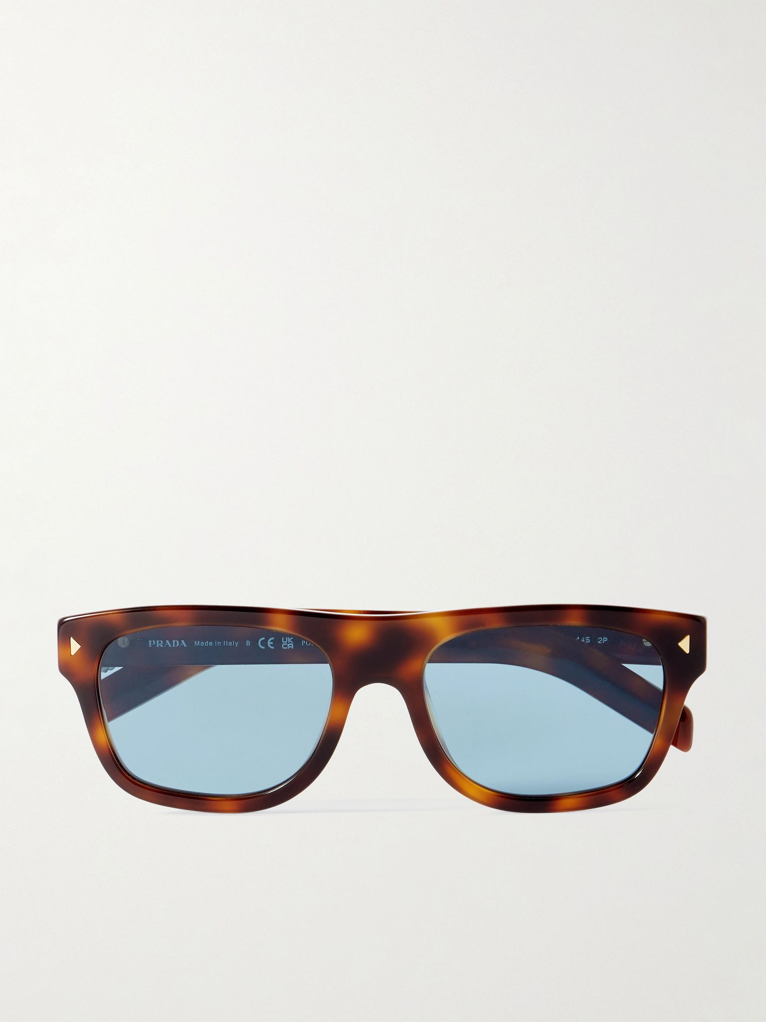 Prada Eyewear's sunglasses have sleek, D-frame lenses that will complement most face shapes. Crafted from tortoiseshell acetate, they're set with blue lenses and have gold-tone metal and etched logos along the arms. Details & Care - Tortoiseshell acetate - Come with a case - 100% UV protection