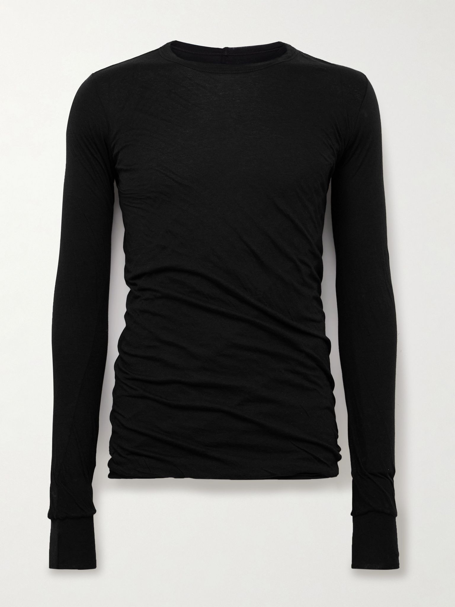 In the hands of Rick Owens, even a basic T-shirt feels slightly elevated. This style is cut slim from the label's 'Unstable' organic cotton-jersey and lined to create a draped effect. Size & Fit - Fits true to size. Take your normal size - Designed for a slim fit - Lightweight, slightly stretchy fabric - Model is shown wearing a M - Model measures: chest 38"/ 96cm, height 6'2"/ 188cm Details & Care - Black organic cotton-jersey - 100% organic cotton - Fully lined - Machine wash or dry clean
