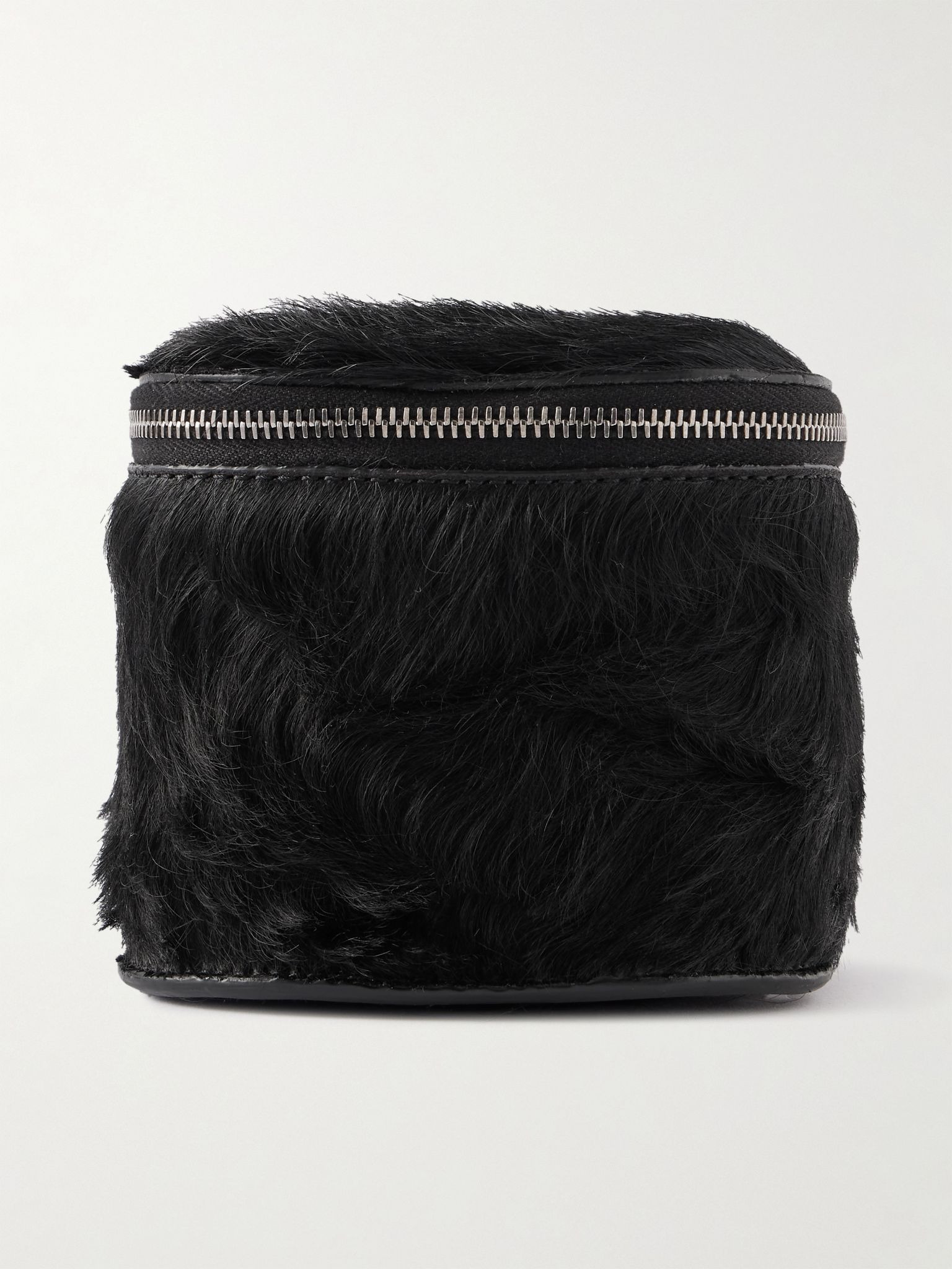 With his Brutalist slant, Rick Owens tends toward raw, unusual textures like the long calf hair used to make this wash bag. Pack it on your travels or use it to tidy up the bathroom counter. Details & Care - Black calf hair - Unlined - Zip fastening
