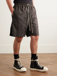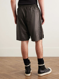 Rick Owens' shorts are crafted from supple 'blistered' leather. Inspired by traditional boxers, they're cut with bevelled side slits and have an elasticated waistband with elongated drawstring ties. Size & Fit - Fits true to size. Take your normal size - Relaxed-straight leg, low-crotch style - Adjustable at the waist - Supple, non-stretchy leather - Model is shown wearing an IT 48 - Model measures: waist size 32, height 6'1"/ 185cm Details & Care - Dark-brown leather - 100% leather (Lamb) - Designer colour: Dark Dust