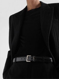 SAINT LAURENT's distinctive monogram was invented in the '60s by typeface designer Adolphe Jean-Marie Mouron and has lost none of its appeal in the years since. This 3cm belt has been made in Italy from smooth leather and secures with a polished silver-tone buckle. Size & Fit - Fits true to size. Take your normal size - Model is shown wearing a 85 - Model measures: waist size 30 Details & Care - Black leather (Calf) - Silver-tone buckle fastening