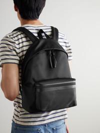 SAINT LAURENT's leather-trimmed backpack is made from shell that'll stand up to the scuffs of daily use. It has a handy front pocket and opens to reveal a generously sized compartment with a padded sleeve to stow a laptop or tablet. Details & Care - Black shell and leather - Top handle, two adjustable shoulder straps - Front zipped pocket, internal zipped pocket and sleeve - Two-way zip fastening - Comes with dust bag
