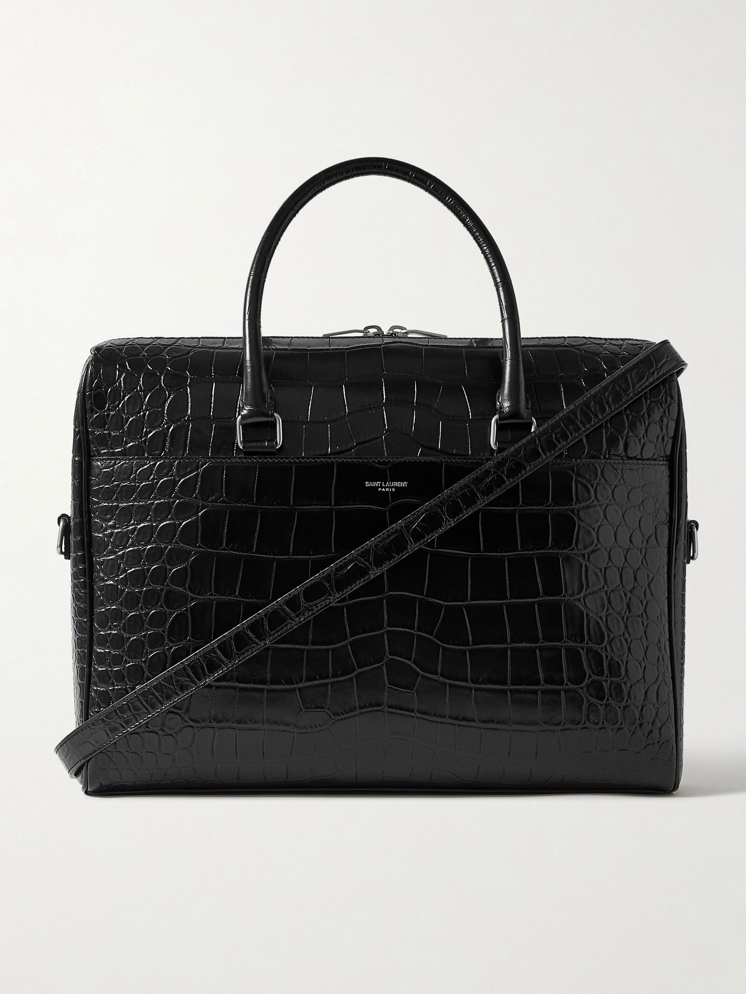 SAINT LAURENT's briefcase is a refined classic that's been perfected over the decades. Crafted from black croc-effect leather, it has a structured silhouette that's smart and sleek. Use it to elevate your workwear repertoire Details & Care - Black croc-effect leather (Calf) - Two top handles, detachable adjustable shoulder strap - Front slip pocket, internal slip and zipped pockets - Fully lined - Two-way zip fastening - Comes with dust bag - This bag has a capacity of approximately 6 litres