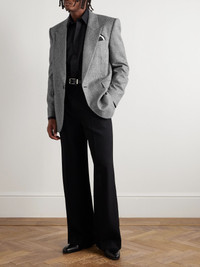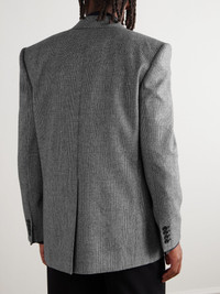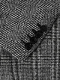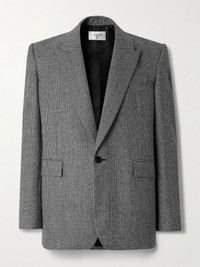 SAINT LAURENT's wool blazer has the same structured look as '80s power suits. Woven with a Prince of Wales check, it's been tailored in Italy and is fitted with padded shoulders for a strong profile. Takes cues from the AW25 runway and style yours with leather trousers. Small to size. See Size & Fit notes. Size & Fit - Fits small to size. Take one size larger than normal - Tailored for a regular fit - Internal shoulder pads - Mid-weight, non-stretchy fabric - Model is shown wearing an IT 50 - Model measures: chest 38"/ 96cm, height 6'0"/ 183cm Details & Care - Black and light-grey wool - Peak lapels, padded shoulders, non-functioning buttoned cuffs, chest welt pocket, two front flap pockets, internal pockets, single vent, fully lined - One button fastening - 100% wool; lining: 100% silk - Dry clean