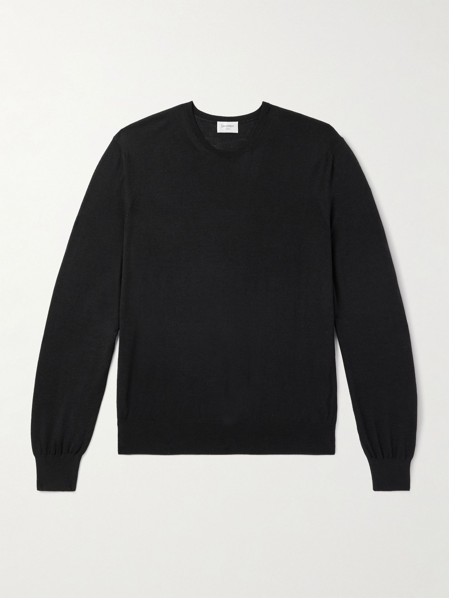 SAINT LAURENT’s classic sweater will form the foundation for countless outfits. It’s finely knitted from lightweight wool and finished with ribbed trims. Size & Fit - Fits true to size. Take your normal size - Designed for a relaxed fit - Fine knit - Model is shown wearing a S - Model measures: chest 36"/ 92cm, height 6'1"/ 185cm Details & Care - Black wool - 100% wool - Dry clean