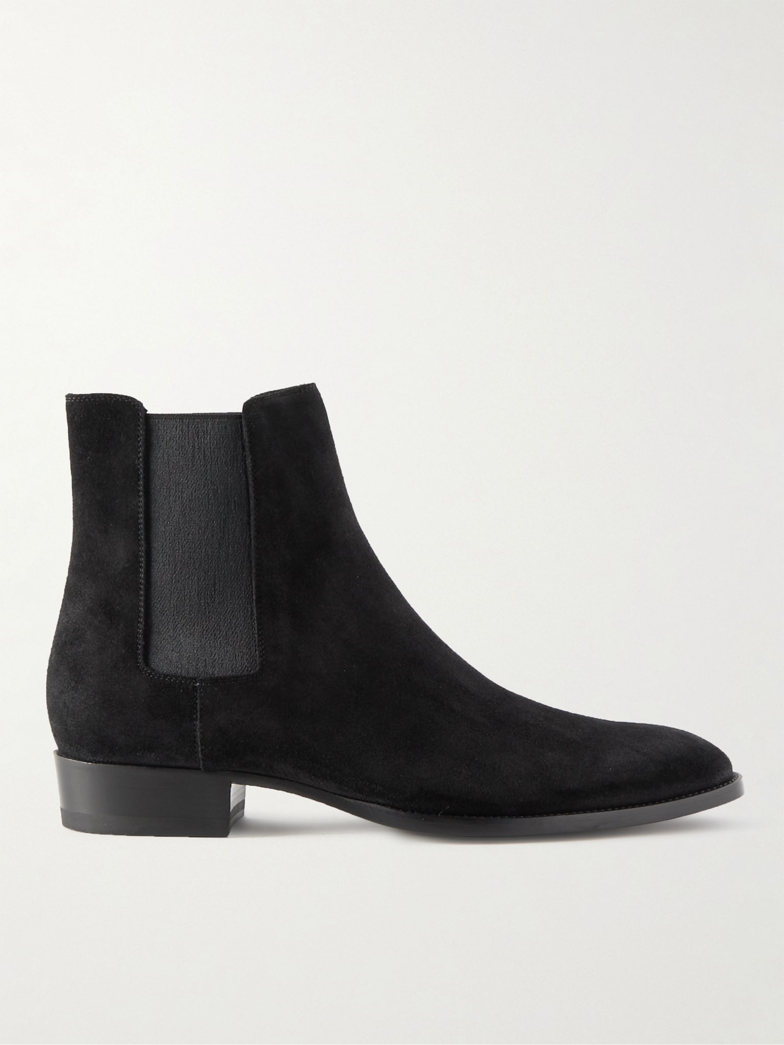 SAINT LAURENT's 'Wyatt' Chelsea boots are a wise investment, since they're a classic style you can return to year after year. Set on Cuban heels, they've been crafted in Italy from black suede that will look even better a little scuffed up. The concealed pull tabs make them easy to get on and off. Size & Fit - Fits true to size. Take your normal size - European sizing Details & Care - Black suede (Calf) - Elasticated inserts, leather linings and soles - Come with dust bags