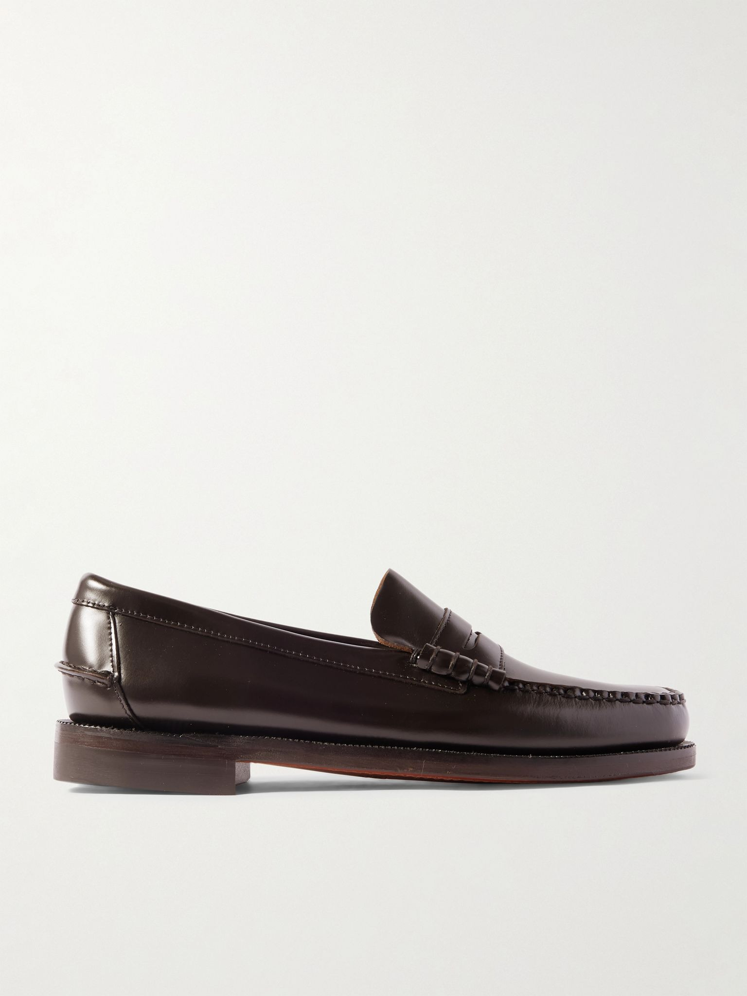 Sebago was founded in New England, the home of Ivy League style. A tribute to its heritage, these 'Classic Dan' penny loafers are hand-sewn from supple leather and have perforated liners for breathability. The heels are cut with a classic 'gentleman's notch' to prevent your trousers from snagging while you walk. Size & Fit Fits true to size, please refer to Sebago size guide below: - UK 6 = US 6.5/ EU 39.5 - UK 6.5 = US 7/ EU 40 - UK 7 = US 7.5/ EU 41 - UK 7.5 = US 8/ EU 41.5 - UK 8 = US 8.5/ EU 42 - UK 8.5 = US 9/ EU 43 - UK 9 = US 9.5/ EU 43.5 - UK 9.5 = US 10/ EU 44 - UK 10 = US 10.5/ EU 44.5 - UK 10.5 = US 11/ EU 45 - UK 11 = US 11.5/ EU 46 - UK 11.5 = US 12/ EU 46.5 - UK 12 = US 12.5/ EU 47 - UK 12.5 = US 13/ EU 48 - UK 13 = US 14/ EU 49 - UK 14 = US 15/ EU 50 Details & Care - Brown leather (Cow)