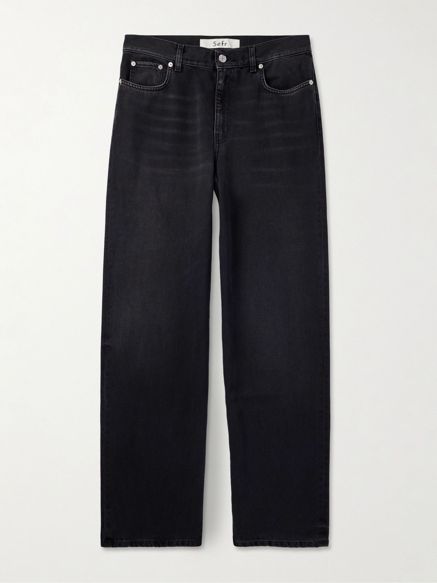 Sefr founders Per Fredrikson and Sinan Abi have an almost encyclopaedic knowledge of fashion, dating back to their days running a vintage shop - their collections are inspired by styles that passed through the doors. Meant to feel vintage, these jeans are made from washed-out black denim and cut in a straight-leg shape. Size & Fit - Model wears a size larger to achieve a looser fit - Relaxed-straight leg, low-crotch style - Mid-weight, non-stretchy denim - Model is shown wearing a 32 - Model measures: waist size 30, height 6'0"/ 183cm Details & Care - Black denim - Button and zip fastening - 100% cotton - Machine wash - Designer wash: Creased Black