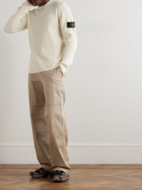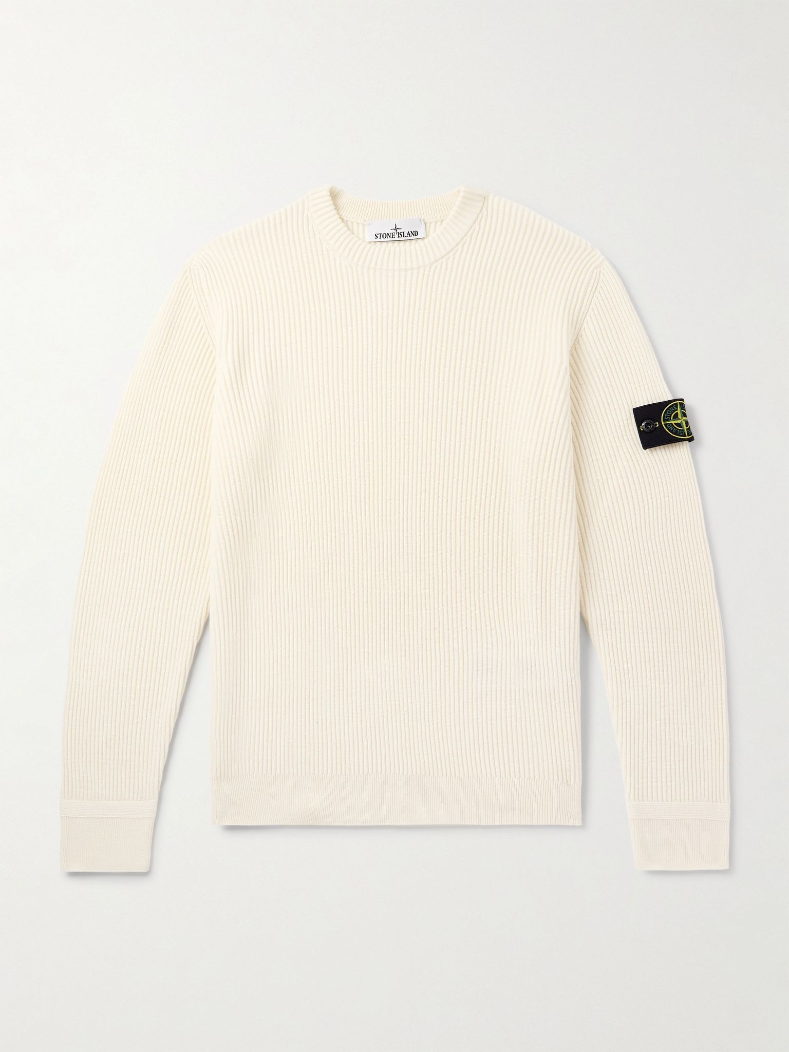 Logo-Appliquéd Ribbed Wool Sweater Ivory