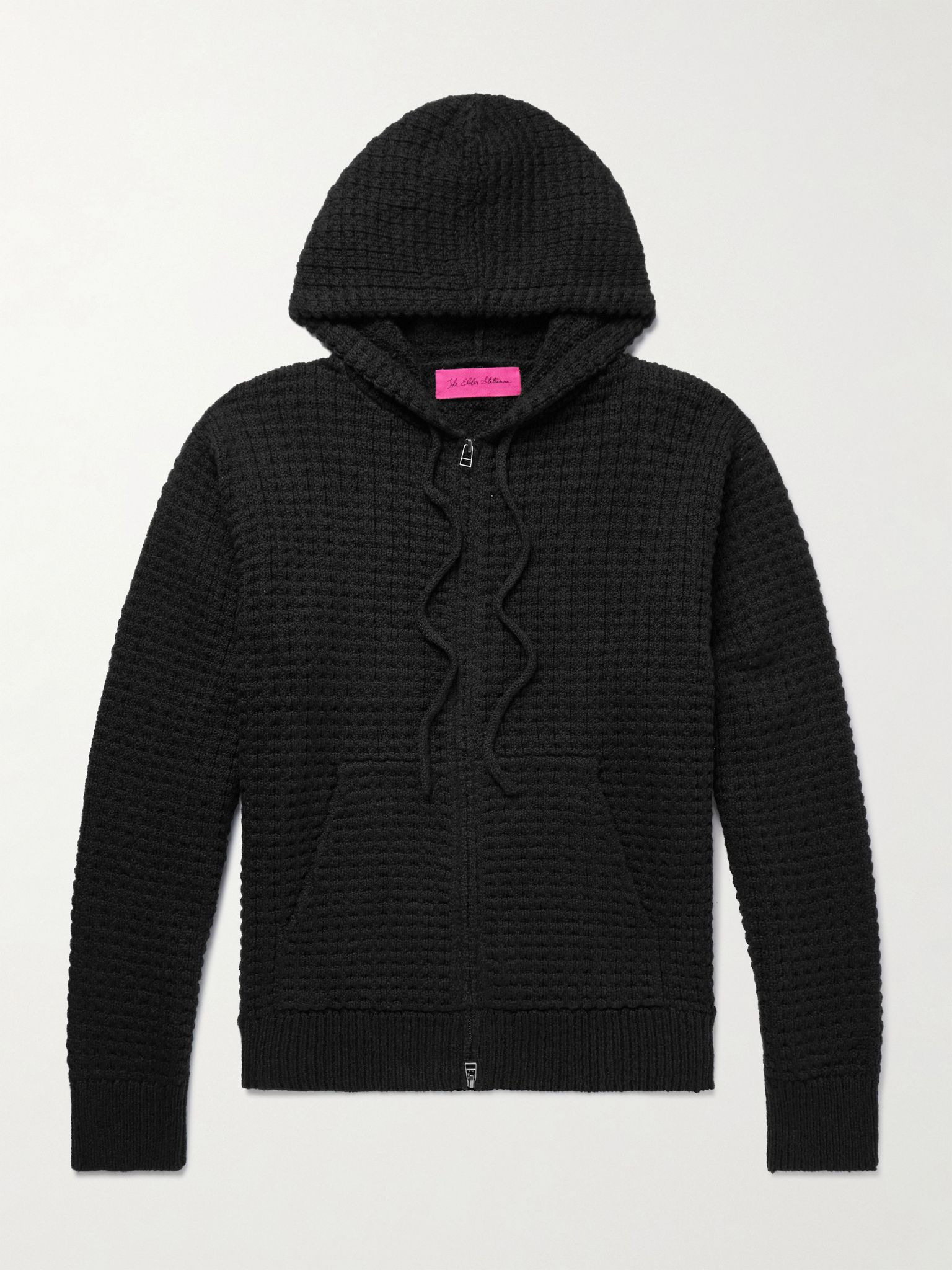 The Elder Statesman's 'Nora' zip-up hoodie is knitted using cotton yarns which have been twisted for a rich textural finish. It has a comfortable, relaxed fit defined by the ribbed trims and drawstring hood. Size & Fit - Fits true to size. Take your normal size - Designed for a relaxed fit - Mid-weight knit - Model is shown wearing a M - Model measures: chest 38"/ 96cm, height 6'1"/ 185cm Details & Care - Black cotton - Two-way zip fastening - 100% cotton - Hand wash