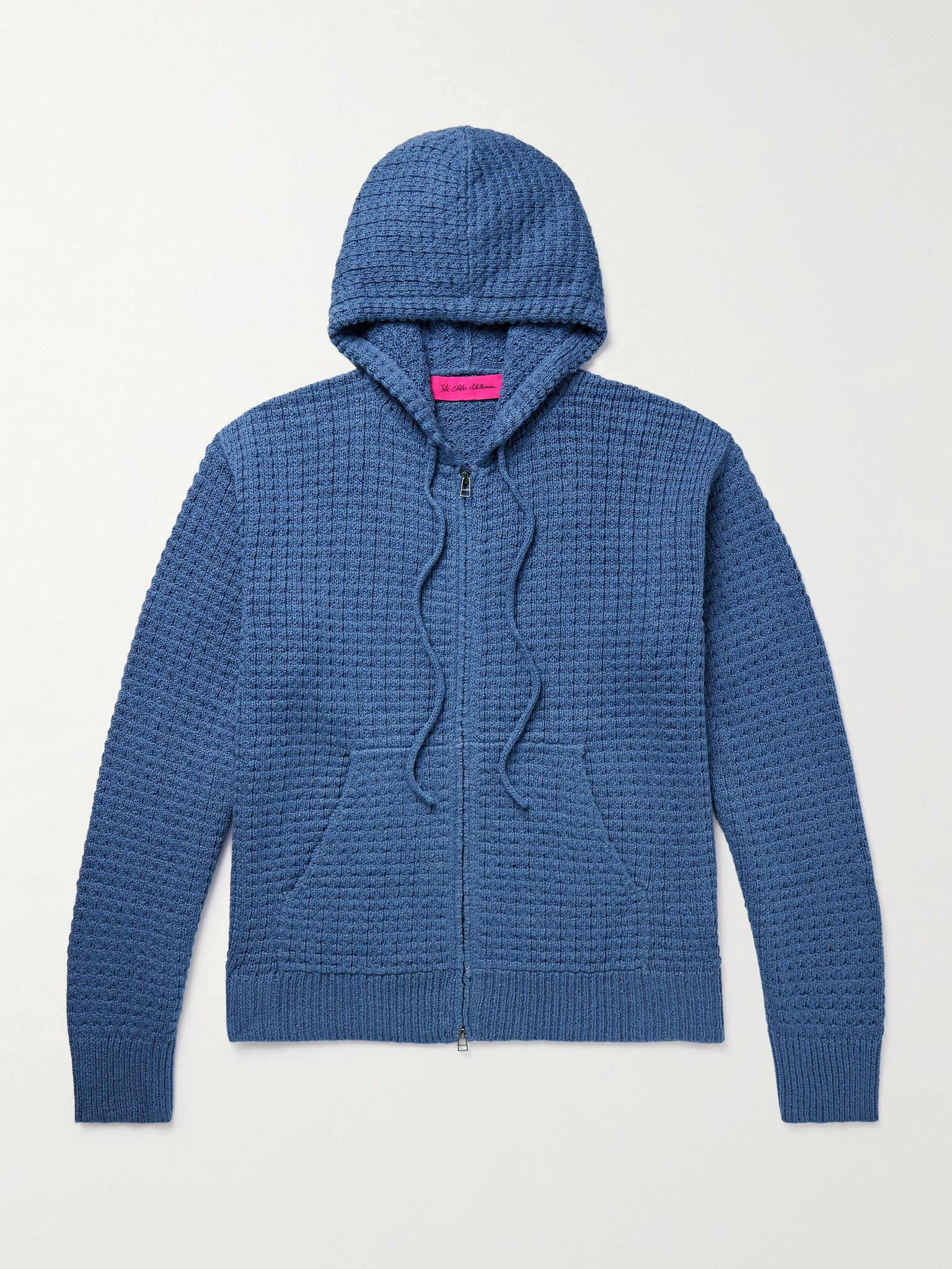 The Elder Statesman's 'Nora' zip-up hoodie is knitted using cotton yarns which have been twisted for a rich textural finish. It has a comfortable, relaxed fit defined by the ribbed trims and drawstring hood. Size & Fit - Fits true to size. Take your normal size - Designed for a relaxed fit - Mid-weight knit - Model is shown wearing a M - Model measures: chest 38"/ 96cm, height 6'2"/ 188cm Details & Care - Blue cotton - Two-way zip fastening - 100% cotton - Hand wash