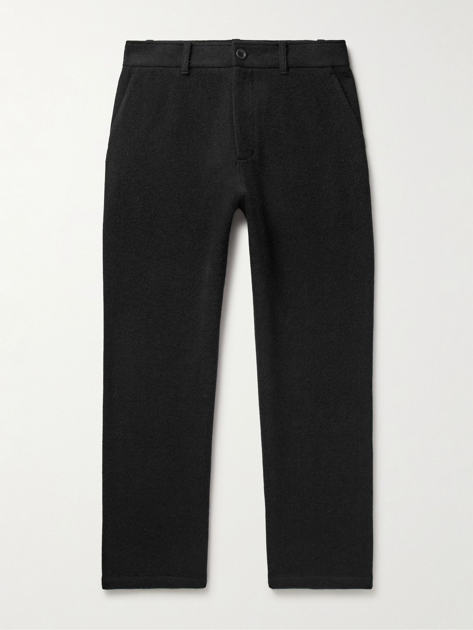 The Elder Statesman's trousers are hand-loomed from mid-weight cashmere, making them a much warmer and softer alternative to classic styles you may already own. They have relaxed-straight legs and will work equally well with crisp shirts or cosy sweaters. Size & Fit - Model wears a size larger to achieve a looser fit - Relaxed-straight leg, low-crotch trousers - Mid-weight, non-stretchy fabric - Model is shown wearing a M - Model measures: waist size 32, height 6'1"/ 185cm Details & Care - Black cashmere - Button and zip fastening - 100% cashmere - Dry clean