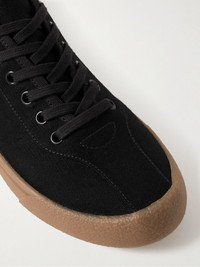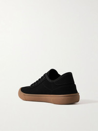 The Row's pared-back design approach results in smart, versatile staples like these low-top sneakers. Reinforced with grosgrain trims, they've been made in Italy from durable canvas and have retro rubber-crepe midsoles. Size & Fit - Fits true to size. Take your normal size - European sizing Details & Care - Black canvas and grosgrain - Lace-up - Style number: F2092-SPC