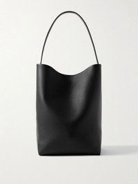 This tote bag's minimalist design has The Row written all over it. Printed with silver-tone branding along the top, it's been crafted in Italy from supple full-grain leather and is perfectly sized to hold your laptop. Details & Care - Black full-grain leather (Calf) - Top handle - Suede lining - Tie fastening