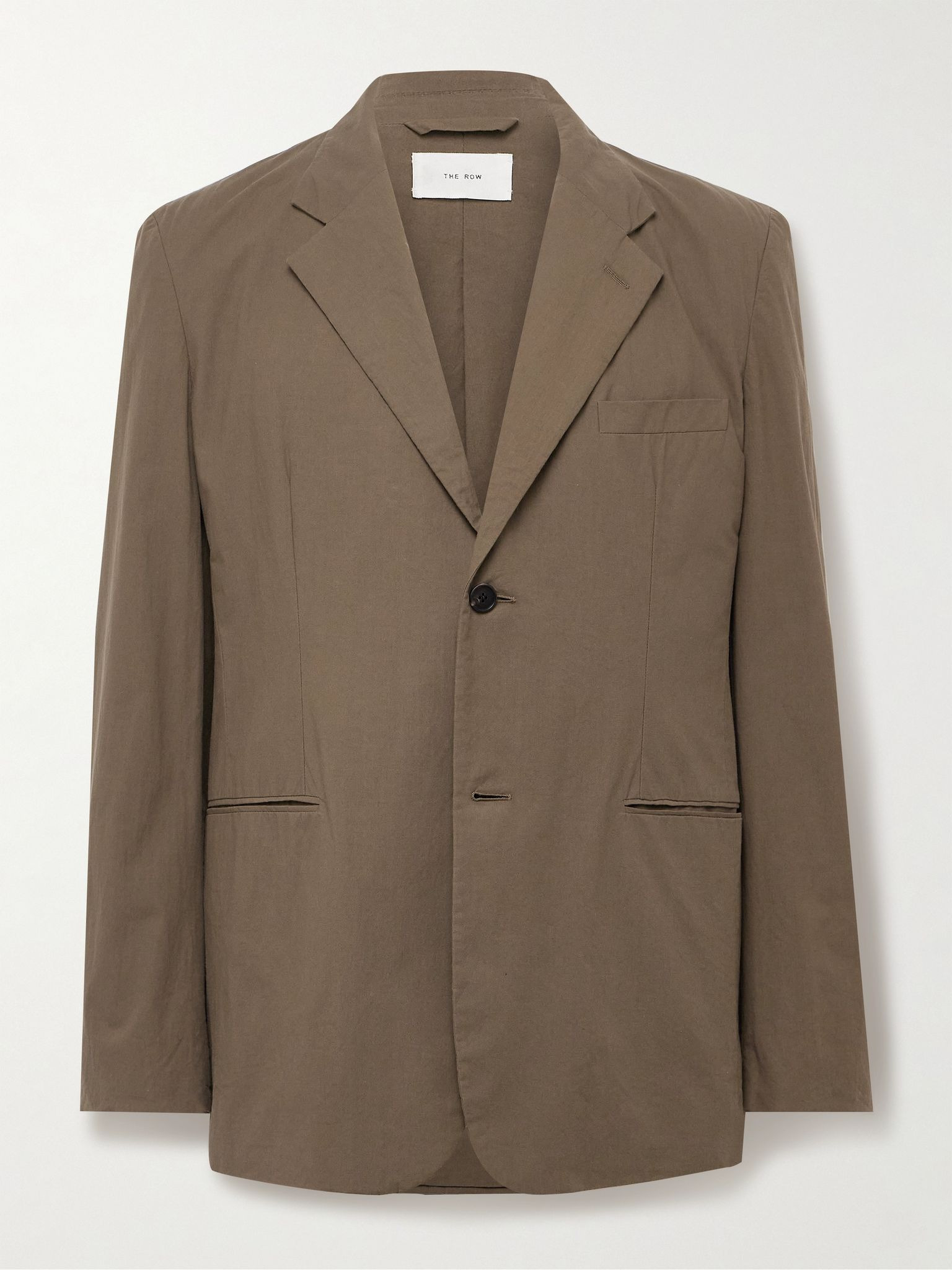 Suitable for smart-casual occasions, The Row's 'Ritchie' suit jacket is a laid-back alternative to formal tailoring. It's been made in Italy from breathable cotton and left unlined for a lightweight feel. Wear yours with a simple tee and the matching trousers. Size & Fit - Fits true to size. Take your normal size - Designed for a slim fit - Mid-weight, non-stretchy fabric - Model is shown wearing a UK 38 - Model measures: chest 38"/ 96cm, height 6'2"/ 188cm Details & Care - Brown cotton - Notch lapels, buttoned cuffs, chest and two front welt pockets - Two button fastening - 100% cotton; buttons: 100% horn (Buffalo) - Designer colour: Khaki