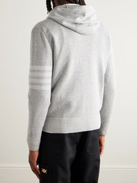 Striped Textured Linen and Cotton-Blend Zip-Up Hoodie Gray