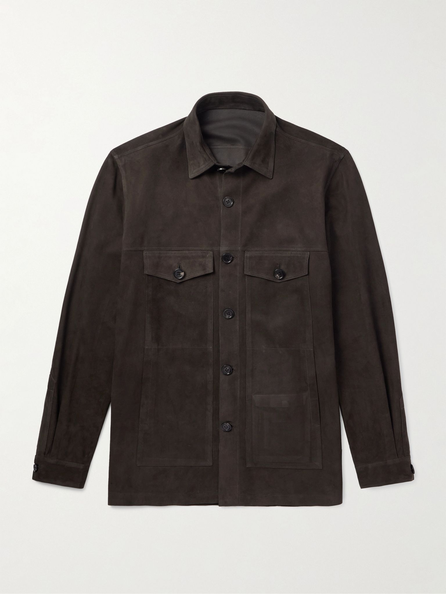 Thom Sweeney's overshirt reinterprets classic workwear through a tailored lens. It's been crafted in Italy from supple suede with utilitarian patch pockets and a sharp collar. The relaxed cut allows for effortless layering. Size & Fit - Those with broad shoulders may wish to take the next size up - Supple, non-stretchy suede - Model is shown wearing a L - Model measures: chest 38"/ 96cm, height 6'0"/ 183cm Details & Care - Dark-brown suede - Button fastenings - 100% suede (Lamb); buttons: 100% horn (Cow) - Specialist clean