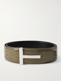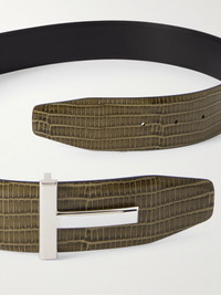 TOM FORD's belt reverses between patent croc-effect and smooth black leather, so you can keep things classic or step it up a notch depending on where you're headed. It's been made in Italy and fastens with a gleaming T-shaped buckle. Size & Fit - Fits true to size. Take your normal size - Model is shown wearing a 90 - Model measures: waist size 32 Details & Care - Green croc-effect leather, black leather (Calf) - Push stud fastening