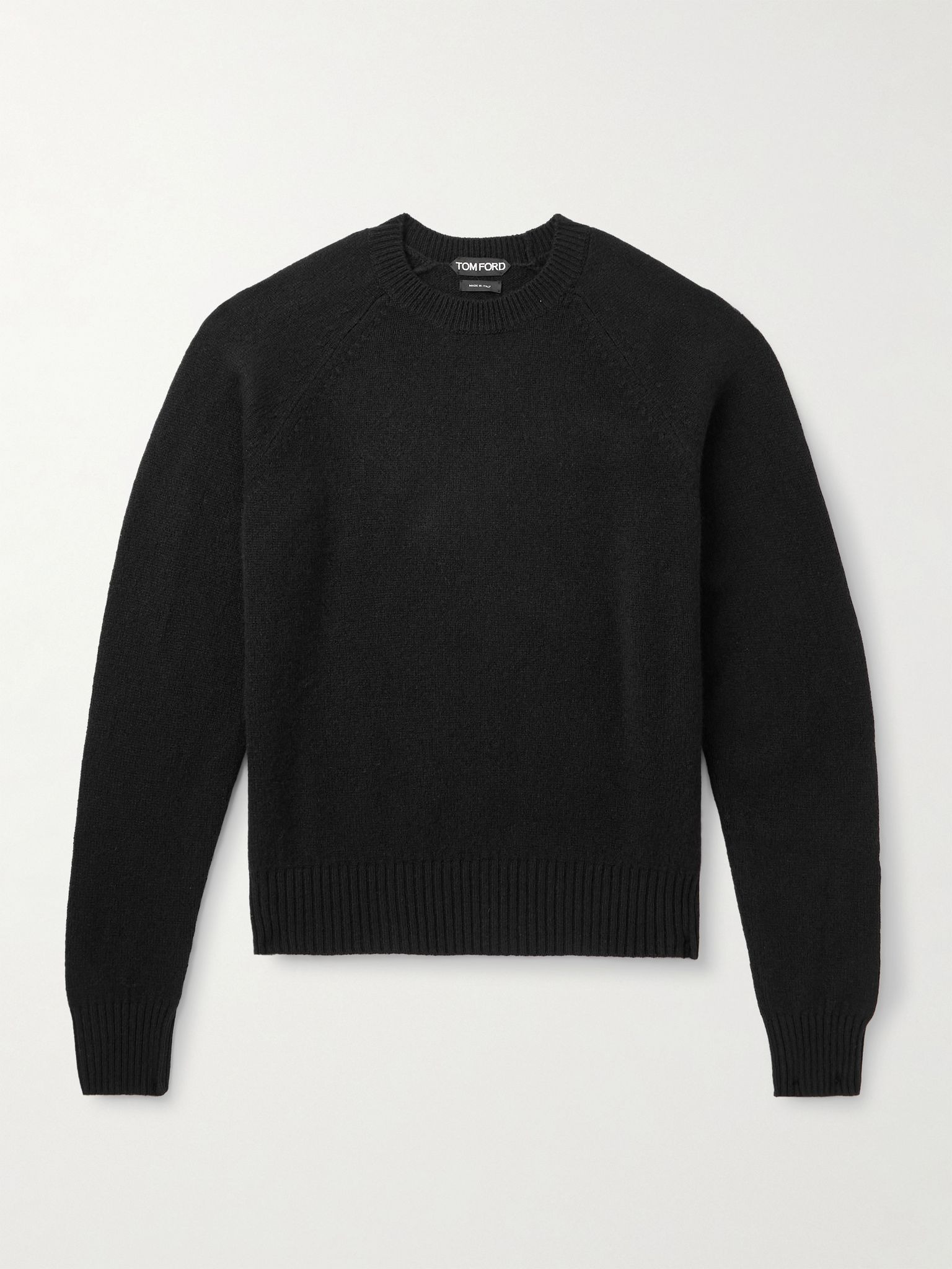 TOM FORD's sweater is a worthy investment. It's been knitted in Italy from black cashmere using a five-gauge stitch for a more structured feel. Wear yours over a tee or collared shirt. Size & Fit - Fits true to size. Take your normal size - Designed for a regular fit - Fine knit - Model is shown wearing an IT 48 - Model measures: chest 38"/ 96cm, height 6'2"/ 188cm Details & Care - Black cashmere - 100% cashmere - Dry clean