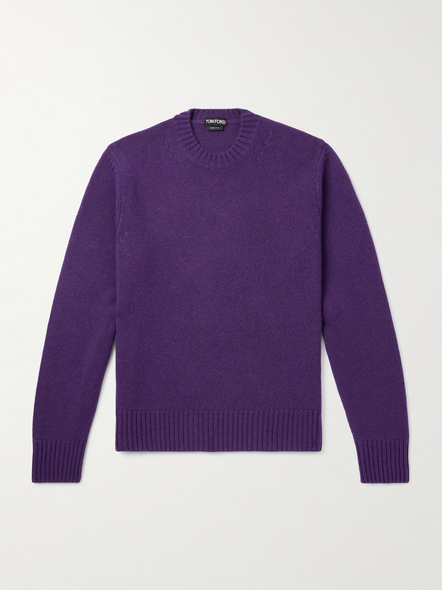 TOM FORD's sweater has been knitted in Italy from soft, naturally insulating cashmere. With the right care - storing it folded and gently using a comb to remove pilling - it'll last a lifetime. Size & Fit - Fits true to size. Take your normal size - Designed for a relaxed fit - Mid-weight knit - Model is shown wearing an IT 48 - Model measures: chest 38"/ 96cm, height 6'1"/ 185cm Details & Care - Purple cashmere - 100% cashmere - Dry clean