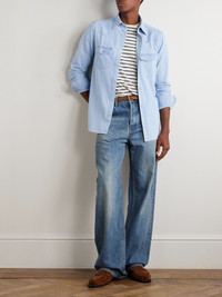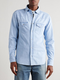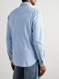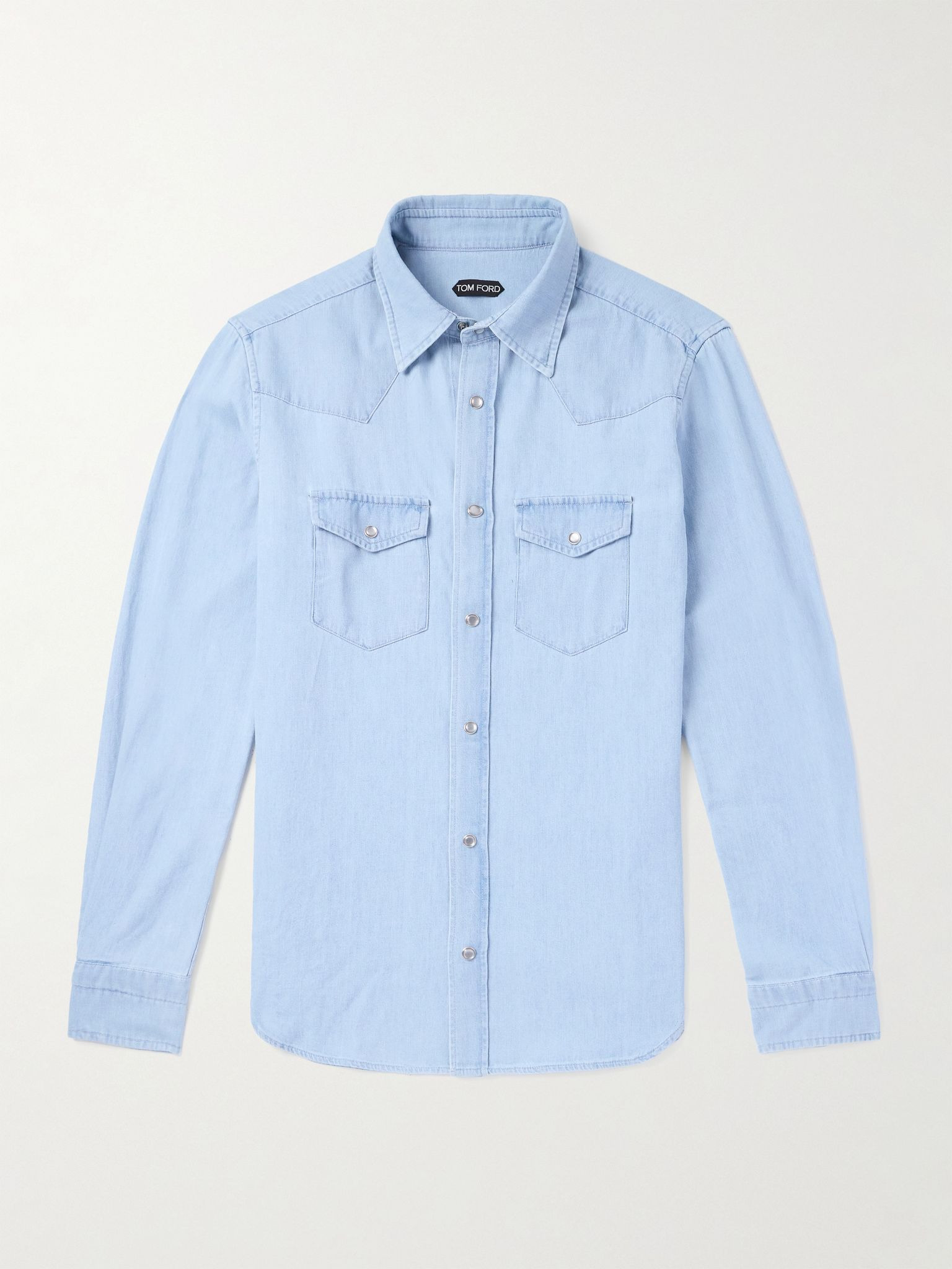 With its pointed yoke and pearlescent snaps, TOM FORD's shirt nods to classic Western styles. It's made from cotton-chambray, a lighter, softer alternative to denim, and has flap pockets on the chest. Size & Fit - Fits true to size. Take your normal size - Those with a larger chest may wish to take the next size up - Designed for a relaxed fit - Lightweight, non-stretchy fabric - Model is shown wearing an EU 39 (UK/US 15.5) - Model measures: chest 38"/ 96cm, height 6'1"/ 185cm Details & Care - Light-blue cotton-chambray - Snap fastenings - 100% cotton - Dry clean
