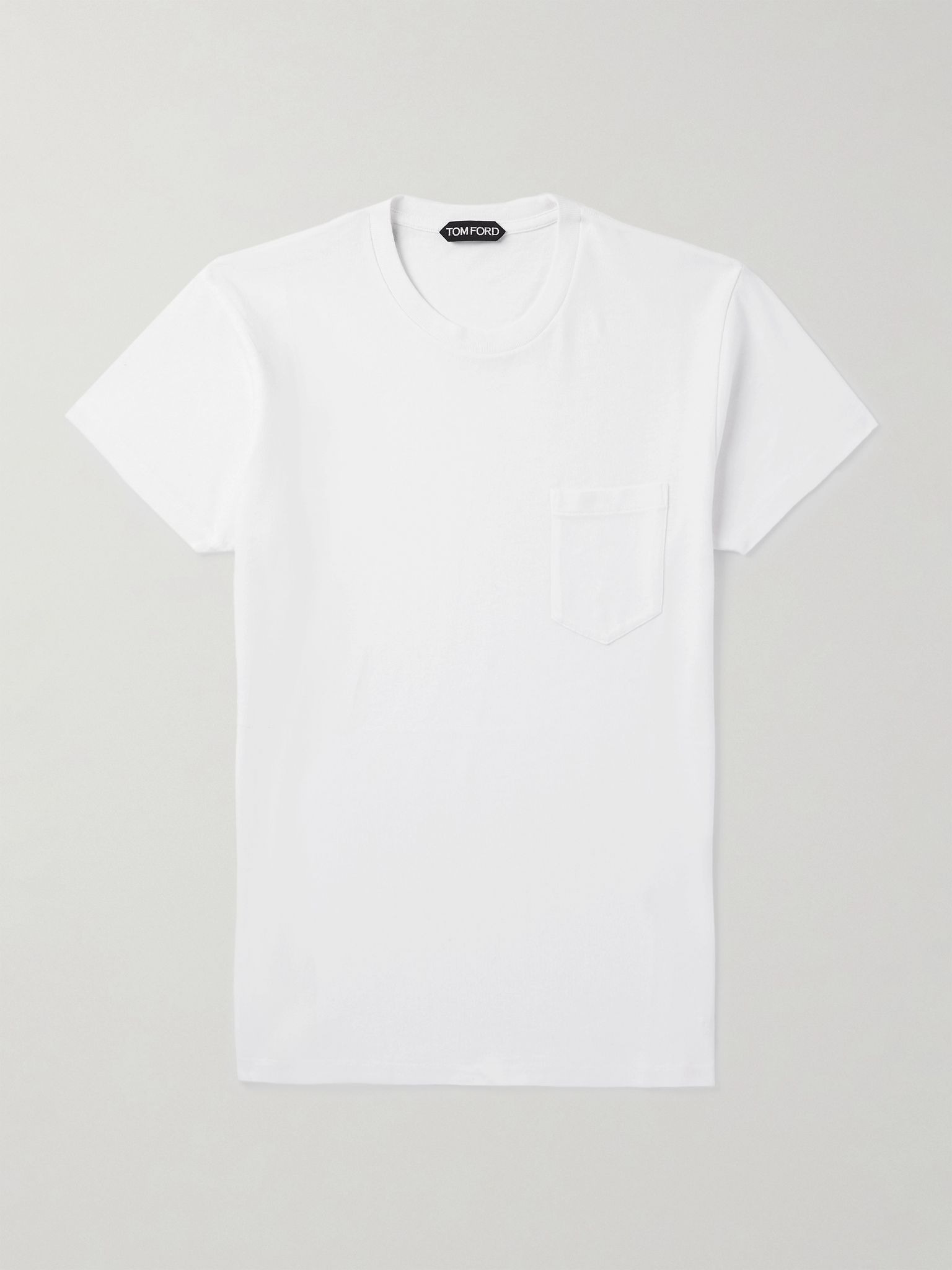 TOM FORD believes confidence comes from feeling comfortable in your clothes. Easy to wear solo or styled as a base layer, this T-shirt is cut from cotton-jersey and subtly embroidered with a 'TF' logo near the hem. Size & Fit - Fits true to size. Take your normal size - Those with a larger chest may wish to take the next size up - Designed for a relaxed cut - Lightweight, stretchy fabric - Model is shown wearing an IT 48 - Model measures: chest 38"/ 96cm, height 6'1"/ 185cm Details & Care - White cotton-jersey - 100% cotton - Machine wash