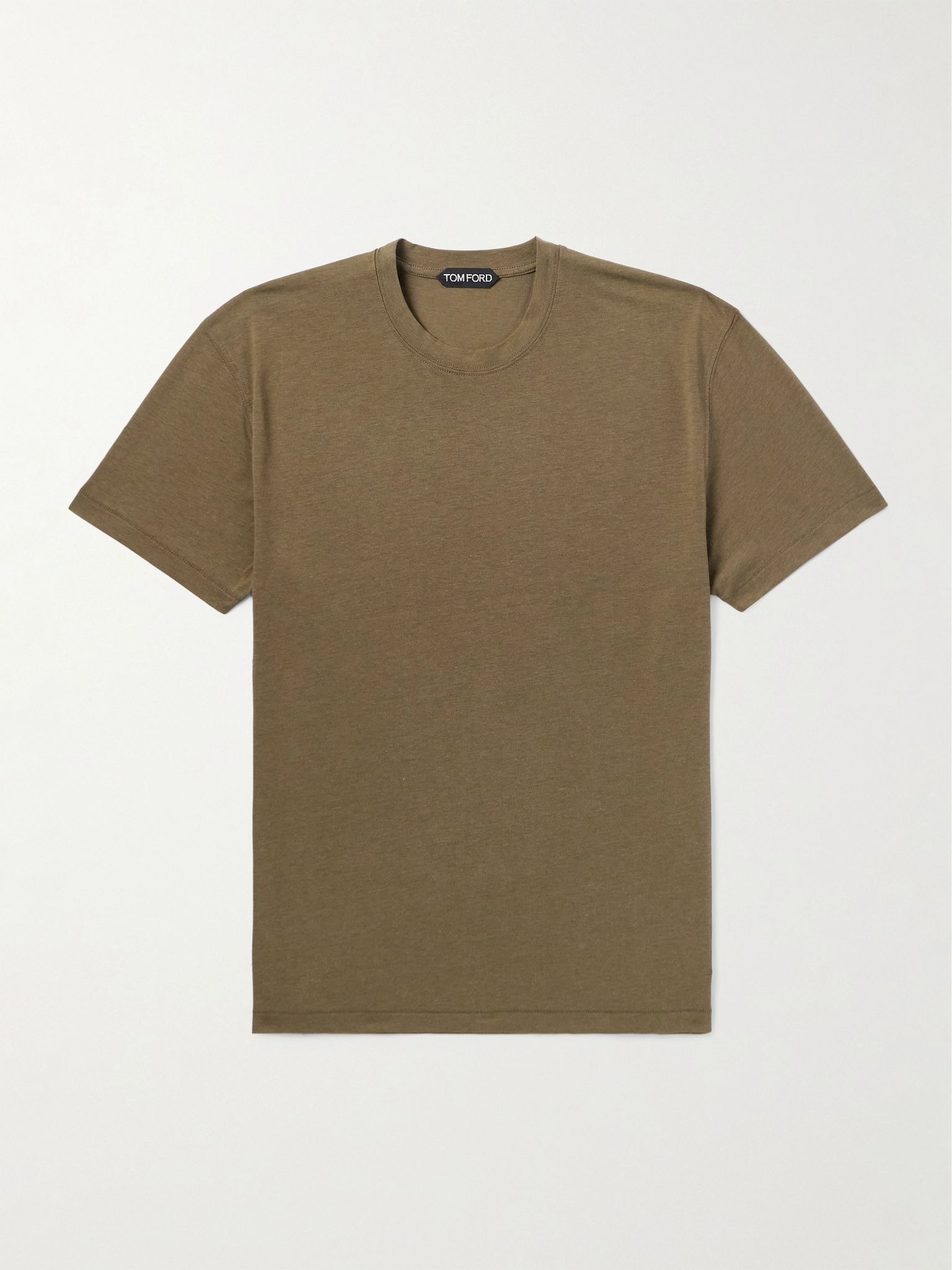 It's worth investing in high-quality basics like TOM FORD's T-shirts. The kind of piece you'll wear on rotation year-round, this army-green version is cut for a relaxed fit from lightweight Lyocell and cotton-blend jersey and subtly embroidered with the label's monogram near the hem. Size & Fit - Fits true to size. Take your normal size - Designed for a relaxed cut - Particularly fitted sleeves - Lightweight, stretchy fabric - Model is shown wearing an IT 48 - Model measures: chest 38"/ 96cm, height 6'1"/ 185cm Details & Care - Army-green Lyocell and cotton-blend jersey - 67% Lyocell, 33% cotton - Machine wash
