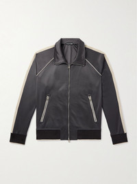Retro track styles inform TOM FORD's jacket. It's made from sporty jersey that's accented by contrasting stripes and has a stand collar and ribbed trims. Small to size. See Size & Fit notes. Size & Fit - Fits small to size. Take one size larger than normal - Designed for a regular fit - Mid-weight, slightly stretchy fabric - Model is shown wearing an IT 50 - Model measures: chest 38"/ 96cm, height 6'2"/ 188cm Details & Care - Grey jersey - Two-way zip fastening - 100% acetate; trim: 90% viscose, 10% elastane - Unlined - Dry clean