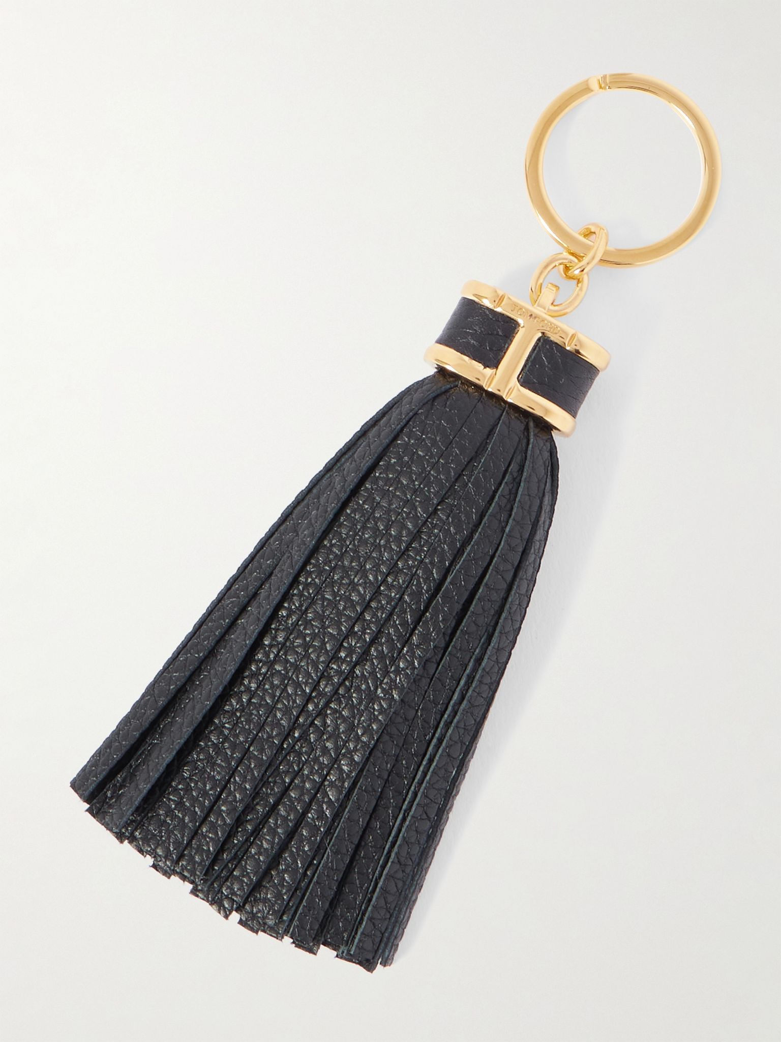 Tasselled Full-Grain Leather and Gold-Tone Key Fob Black