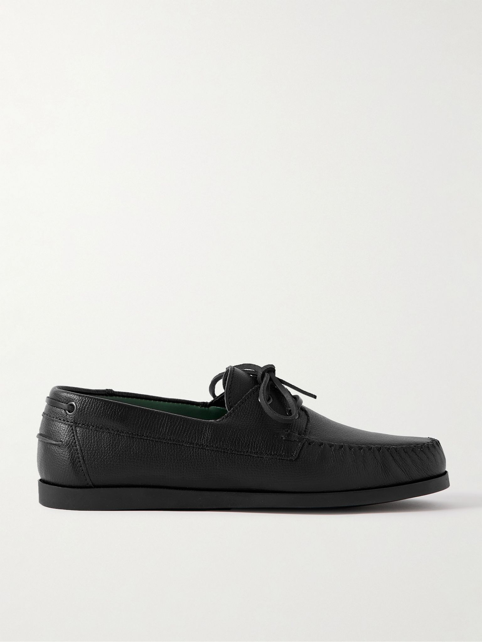 VINNY's footwear is meticulously handcrafted in understated colors and timeless silhouettes, ensuring it remains in your wardrobe for years to come. These 'Boatman' boat shoes are crafted from full-grain leather and rest on rubber soles for comfort and grip. Size & Fit - Fits true to size. Take your normal size - Only available in full sizes, go up to the nearest whole size if you take a half size - European sizing Details & Care - Black full-grain leather (Cow) - Lace-up