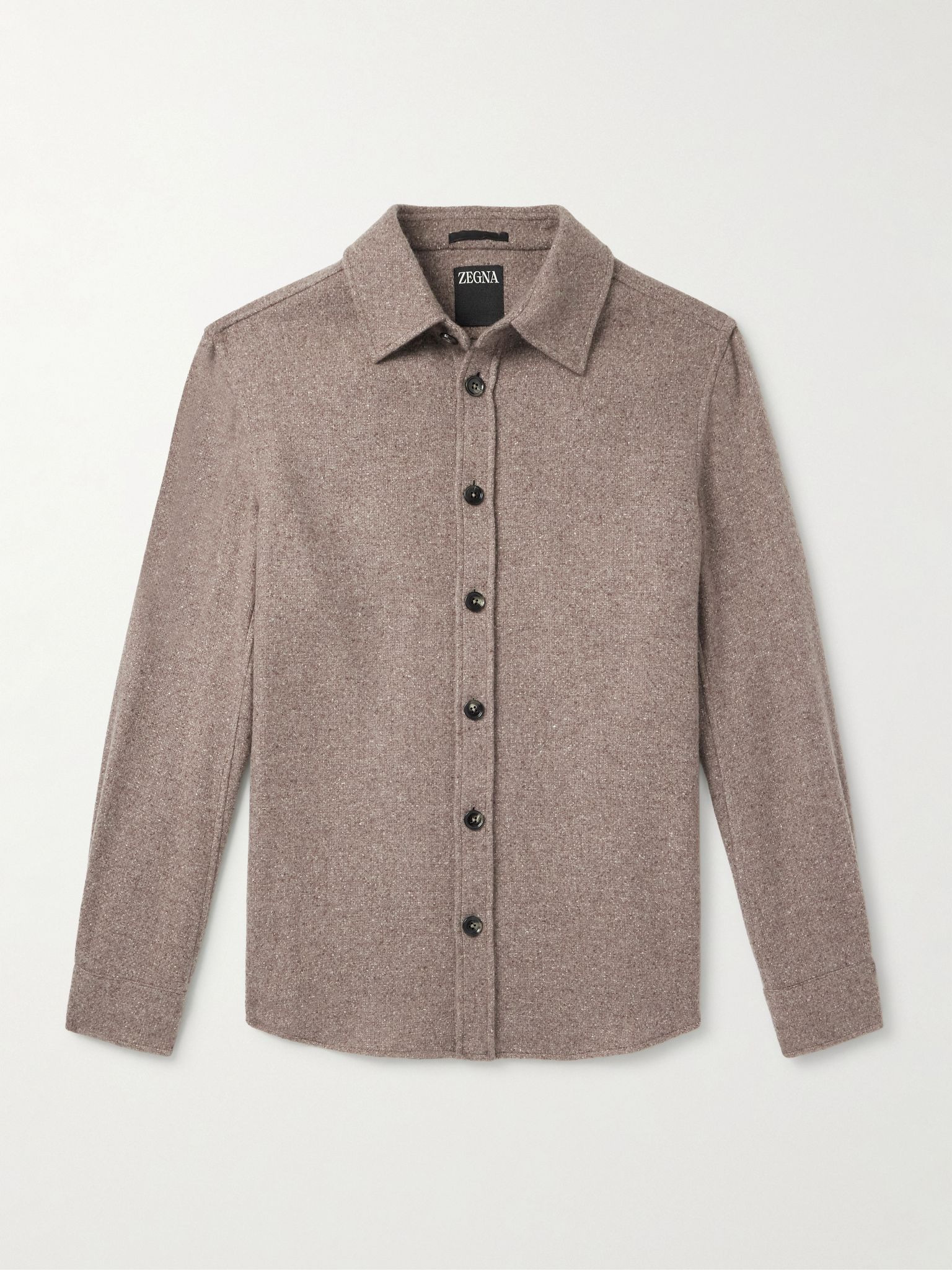 ZEGNA's shirt will work for both the office and weekends. Tailored from a smooth cashmere and silk-blend, it's cut for a slightly loose fit and has a leather hanging tab at the back. Wear yours layered over a plain tee. Size & Fit - Fits true to size. Take your normal size - Designed for a slightly loose fit - Sized for layering - Mid-weight, non-stretchy fabric - Model is shown wearing a S - Model measures: chest 36"/ 92cm, height 6'1"/ 185cm Details & Care - Brown melange cashmere and silk-blend - Button fastenings - 59% cashmere, 41% silk - Dry clean