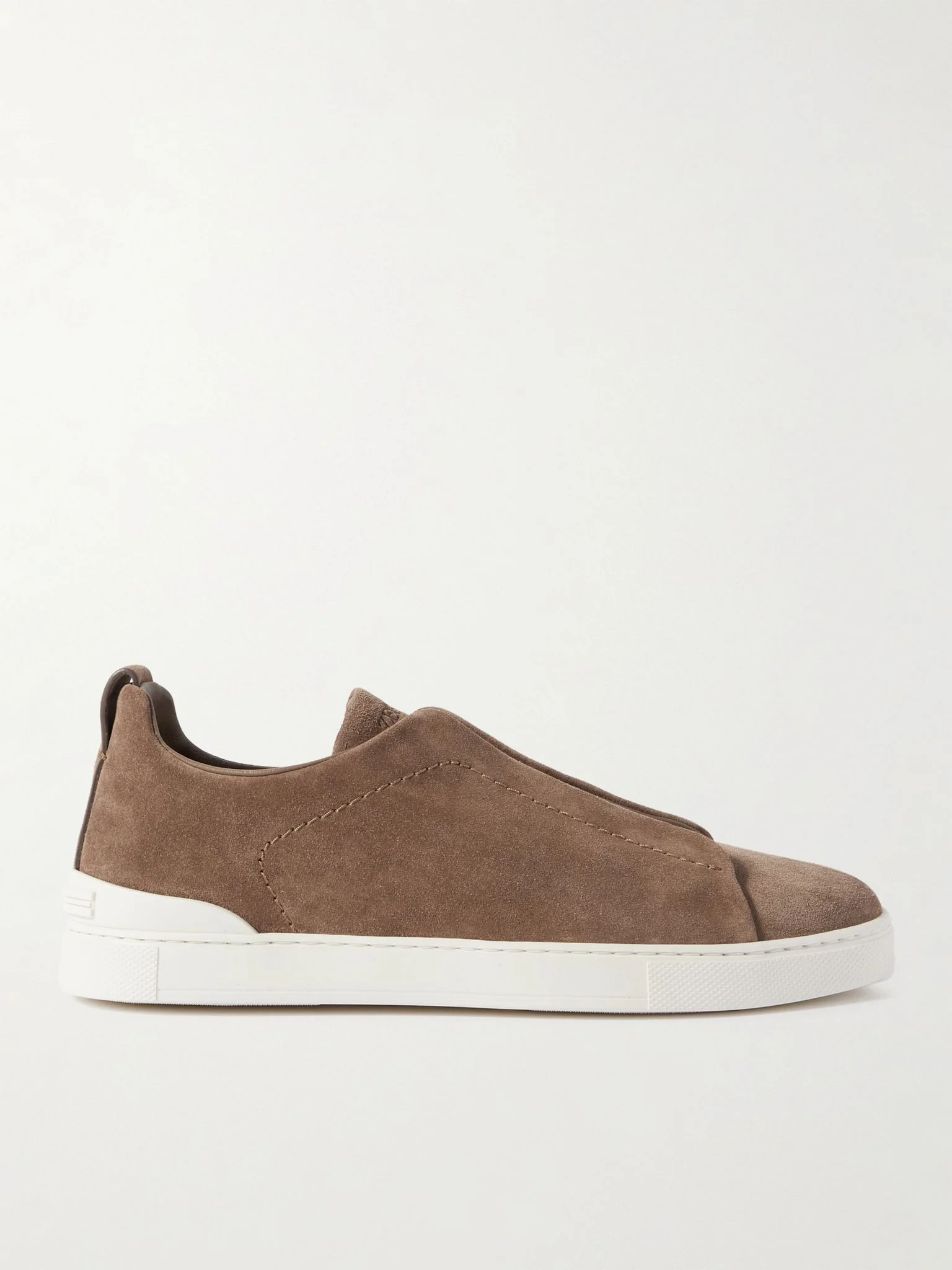 ZEGNA's sneakers are well-made and versatile, so you'll be able to wear them often. Made in Italy with tactile suede uppers, they're fitted with elasticated inserts so they're easy to get on and off and detailed with signature 'Triple Stitch™' embossing along the heels. Size & Fit - Fits true to size. Take your normal size - UK sizing Details & Care - Beige suede (Calf) - Style number: LHSOY-S4667Z-COC