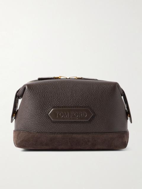 Suede-Trimmed Full-Grain Leather Wash Bag Brown