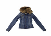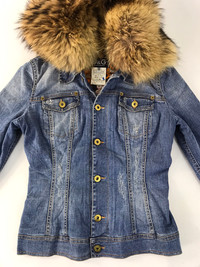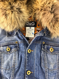 D&G Dolce Gabbana Fur Jeans Denim Jacket Trucker Biker