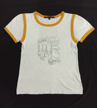 CONDITION: Worn (8.5/10). Minor stain on back of shirt (MARK WITH PEN). Please see the pictures for more details. MEASUREMENT: (WOMEN) TAG SIZE: Fits XS (PLEASE SEE MEASUREMENTS) ARMPIT TO ARMPIT: 15 INCHES LENGTH: 21 INCHES MATERIAL : Cotton CODE SHIRT : A155 NOTE : Please see the pictures for more details. *Please provide TELEPHONE NUMBER after purchased, I need to fill the postage form for delivery process. Thank you.